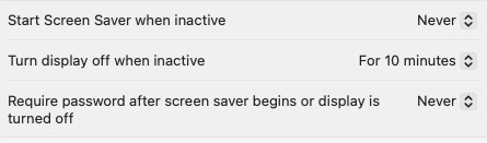 Cannot change "Require password after screensaver begins or display is turned off" - it is readonly.