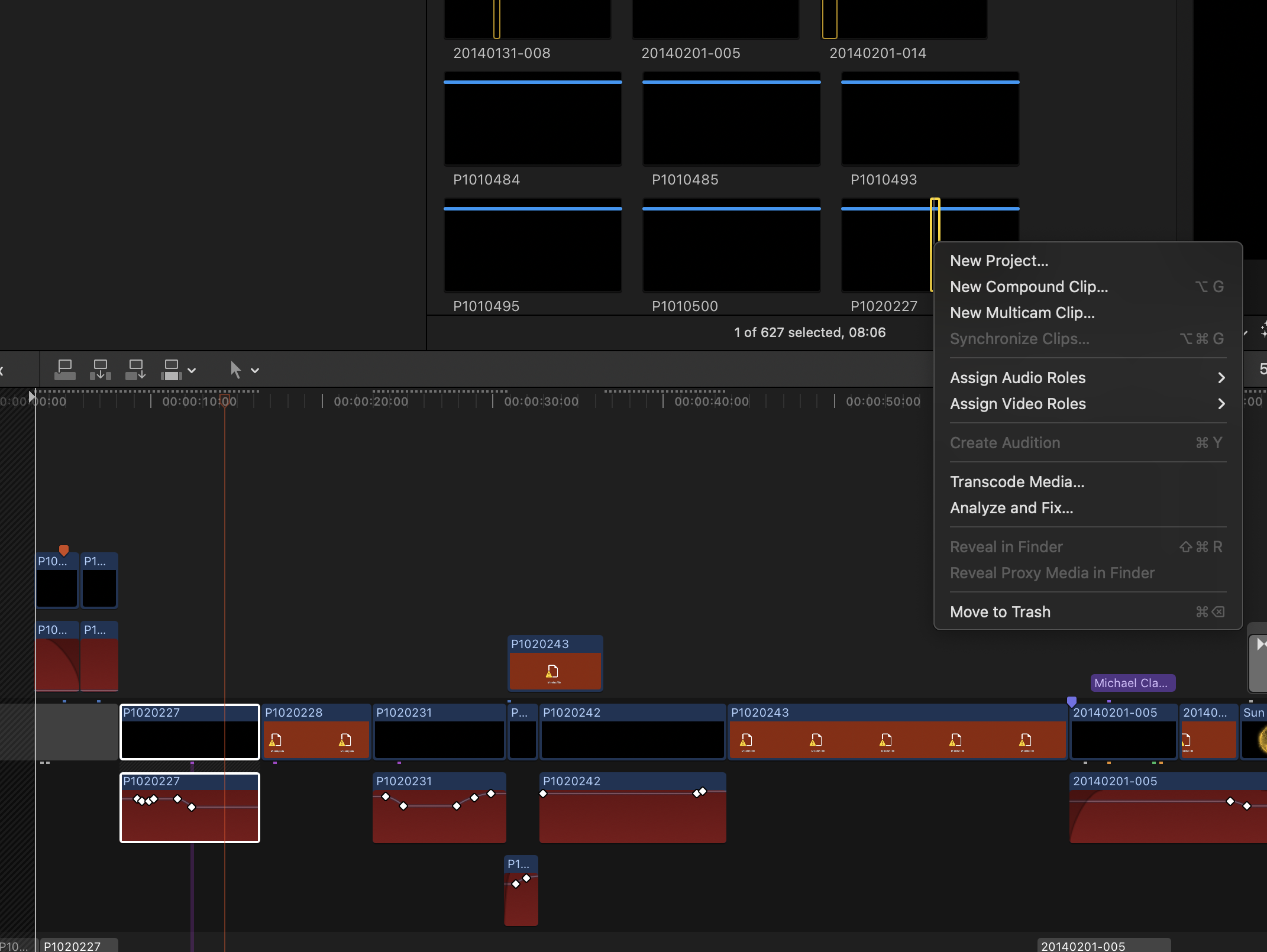 When I open the Master Project, quite a number of the clips are un-linked. I can find the placer in the Browser (but no thumbnail image, just a black frame), and the 'Reveal in Finder' is greyed out.