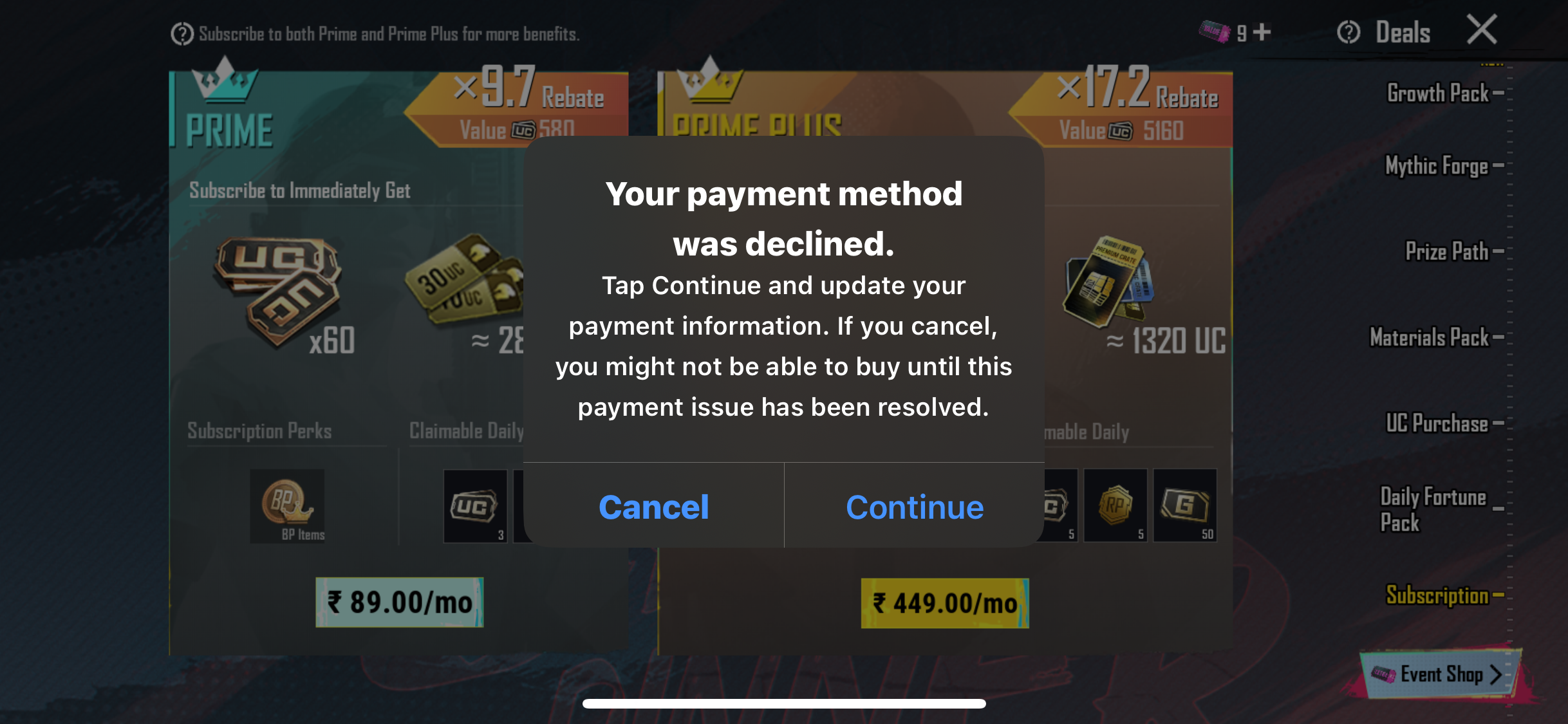 Review this page, you may need to contact your UPI payment method to determine the cause. If you had a previous transaction that was not able to be processed, then that will need to be paid first and your payment method may no longer be valid.