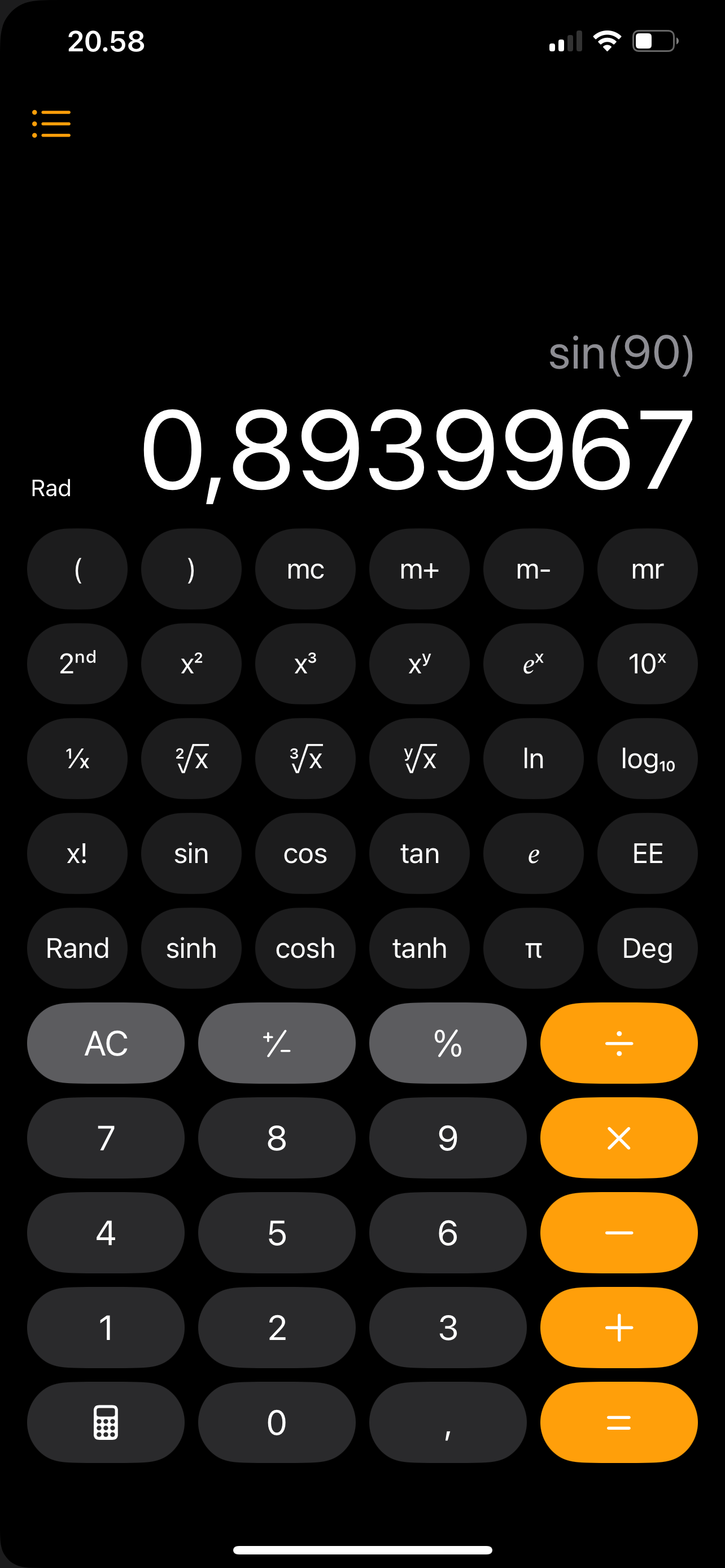 Incorrect trigonometric functions in Calculator after Apple software update
