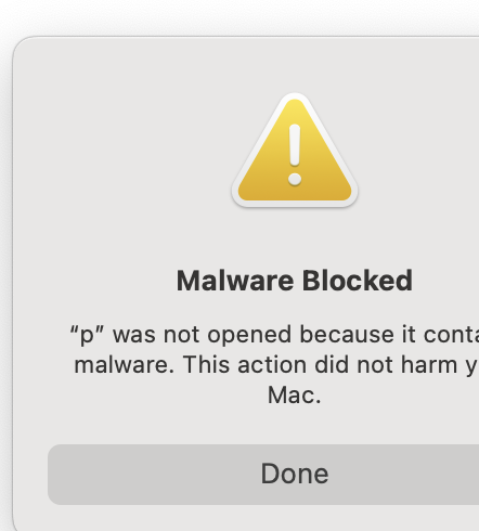I keep getting a "Malware Blocked" alert window. After selecting "Done" is goes away momentarily and then reappears. It is the same file name each time. I tried to search for the file name to trash it but I cannot find it.