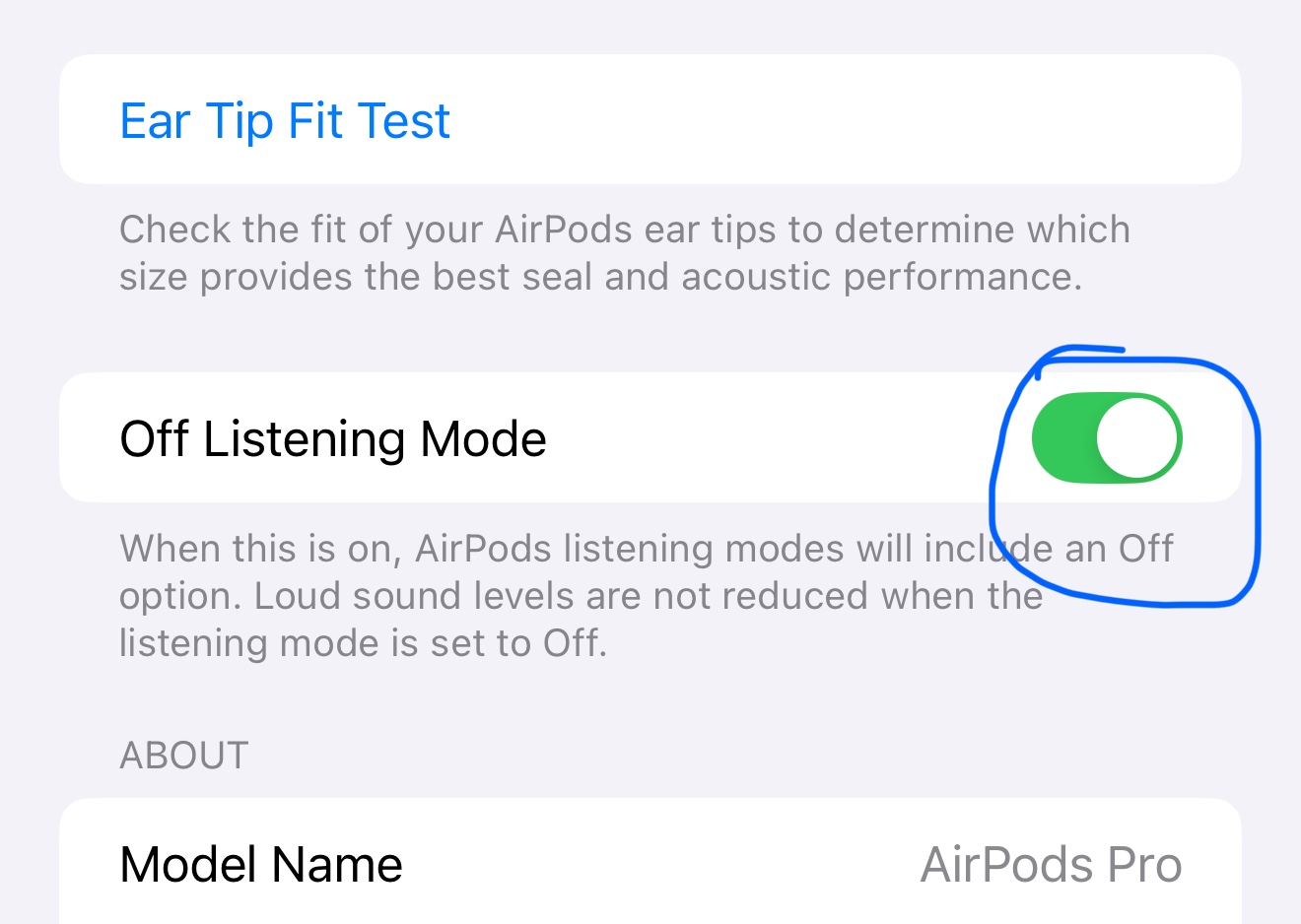 The ability to turn the different active listening modes off completely has apparently been removed in this update. Transparency mode seems to be the default setting now. I am very unhappy with this change as I do not like the noise allowed in with transparency and adaptive mode, but I also do not want active noise cancelling at times, either. This is especially a problem when I'm listening with only one AirPod at a time. I hope they restore the ability to turn all these modes off. If not, I'll be switching to another brand.