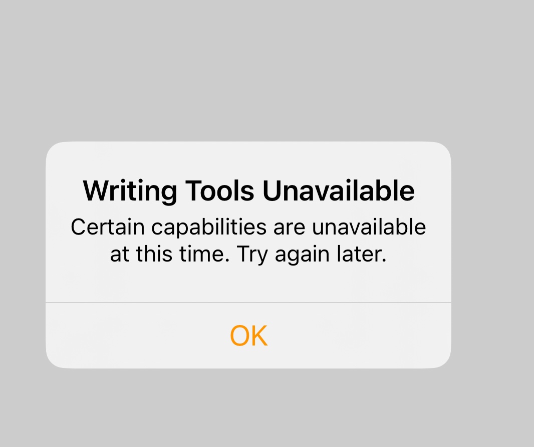 Why do I get error "Writing Tools is unavailable" when opening Apple Intelligence?