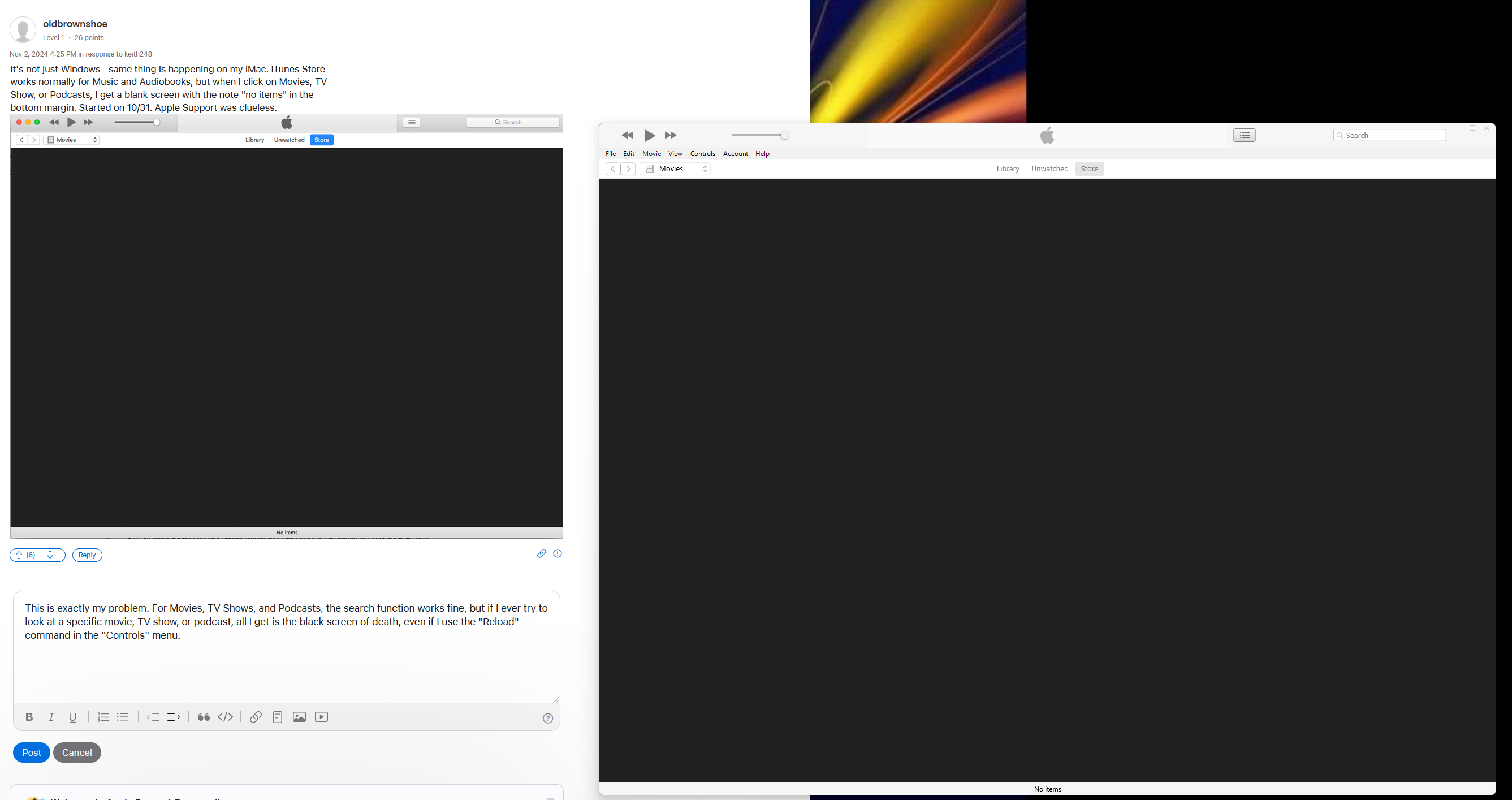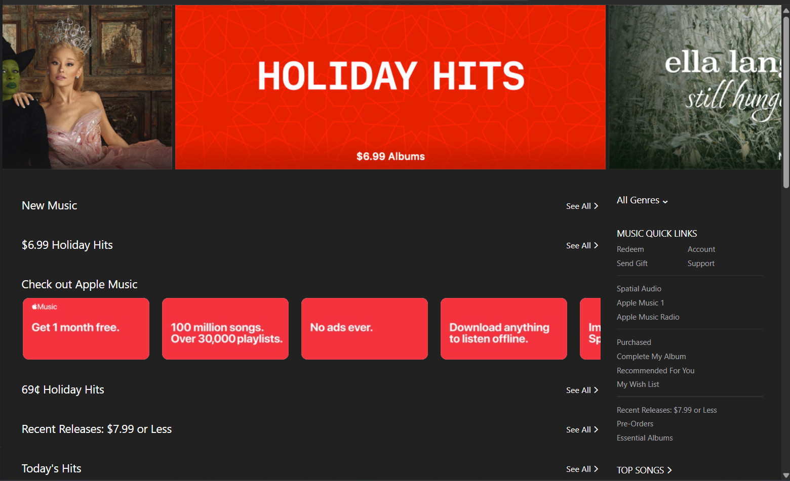 I can connect to the main page of the iTunes store and everything loads. Can see the top 10 songs, albums, etc. However if I click on anything, it brings me to a blank page. So I can't see the full chart or albums for pre-order, etc. iTunes is running on a Windows 10 PC and it seems to be an issue since downloading the latest update.