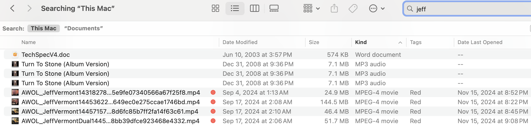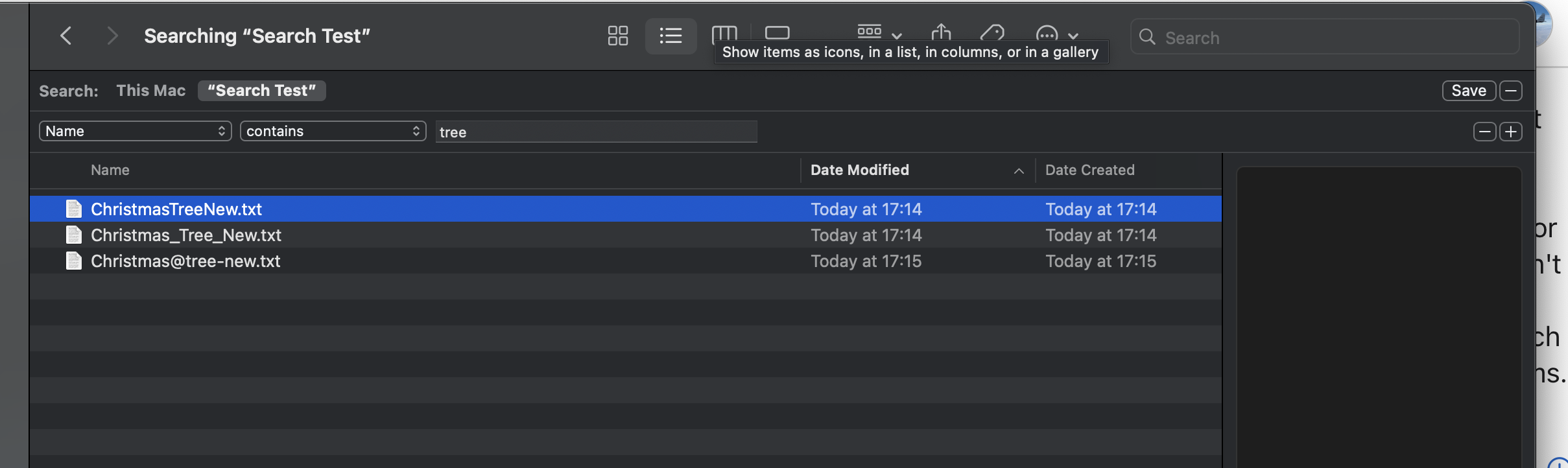 Thank you for your detailed reply and testing, but I still am confused. I get how to do complex search queries but you seem to be indicating that the search isn't broken and I don't understand how that can be true given that, as far as I can tell, there is no rhyme or reason to what I see. Most of the time, if I just type a word/string into the search box in the top right of a finder window, it will find that word/string pretty much anywhere, ranging from the Comments of a file, to its name, to metadata, and everything in between. Doubtlessly they are all indexed as separate regions, which is why the detailed search can break them down in the more focused search. It almost always works fine on a partial string match. It might not find "tree" in ChristmasTreeNew.jpg, at the same time it will find "Mac" in RetiredMacStack.jpg (all case insensitive). It almost always will find the docs I'm looking for, it just sometimes doesn't. I could understand if the item was missing from the index, but because it will find it if I search on the fuller name, starting from the beginning, it is clearly in the index. For lack of proper terminology, the name field seems to be intact in the index, so if it were my old ECM system, I would be pretty certain that the problem is with the search function, basically some bug where it doesn't always fully read the name field.