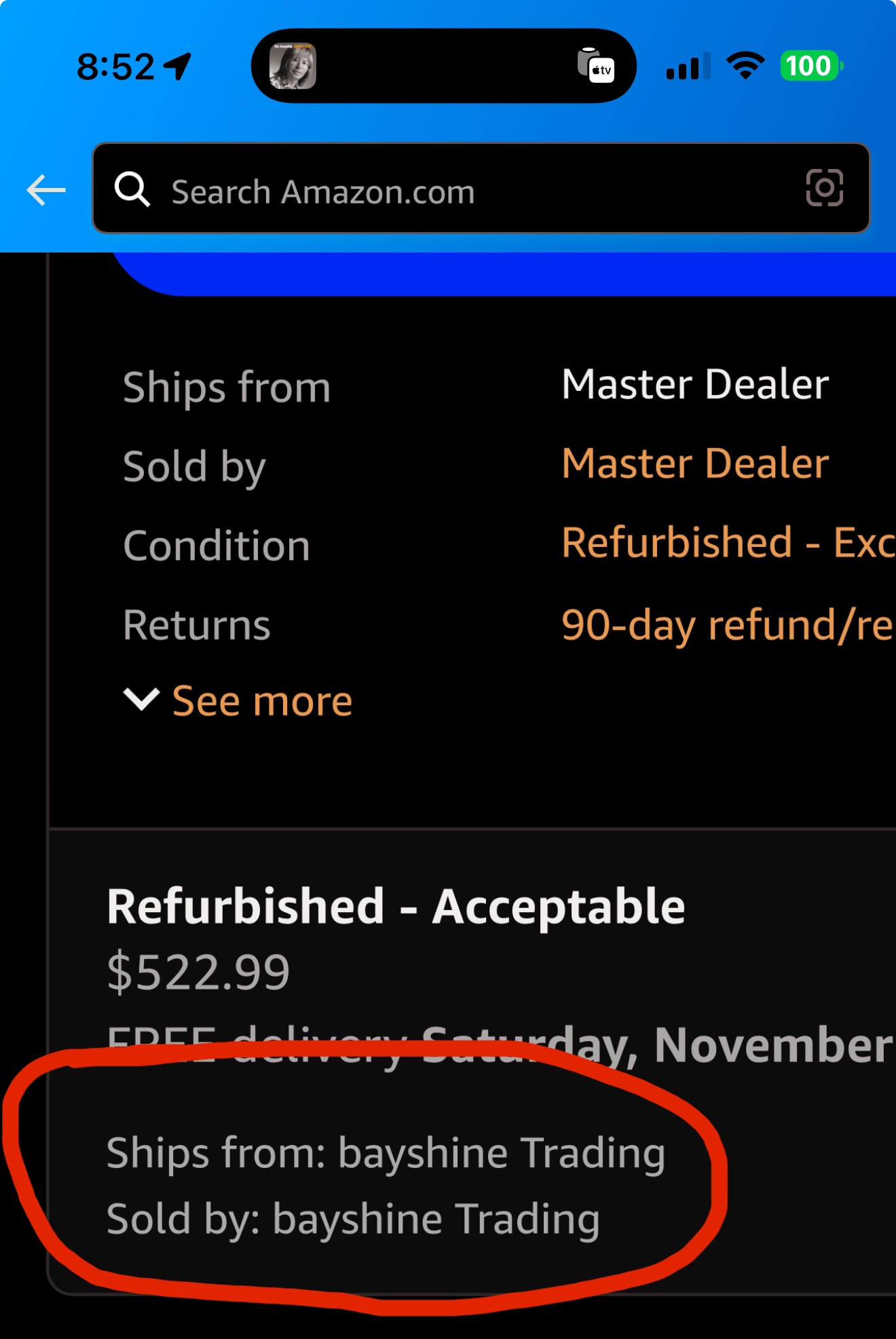 Refurbished by third party, not Apple supported and sold on Amazons website?