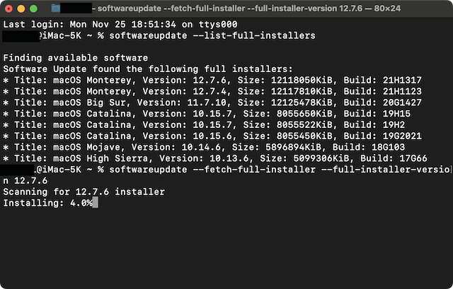 softwareupdate  --list-full-installers