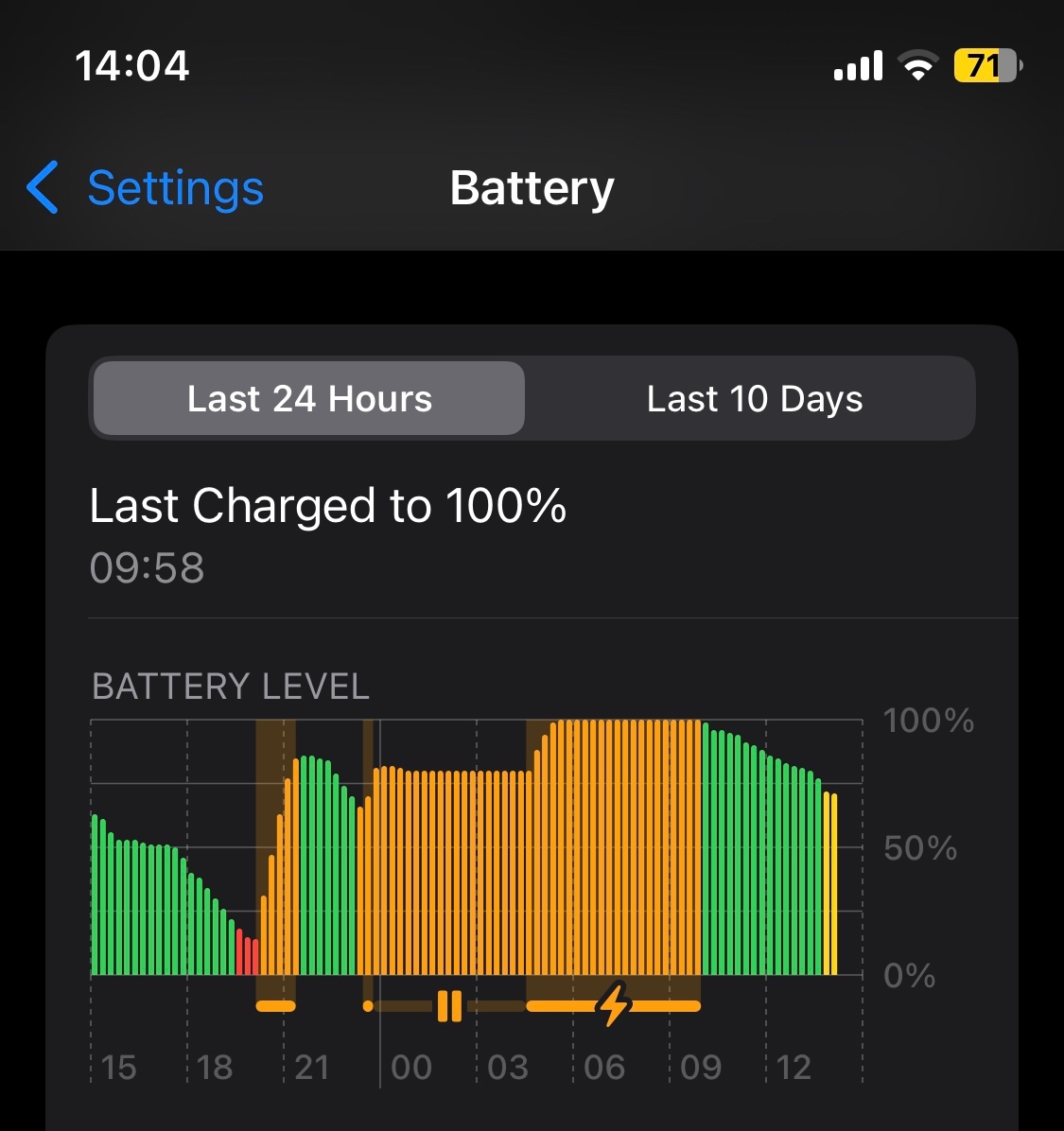 In Battery settings I noticed the graph display orange, not yellow which indicates low power mode. What does orange in the graph mean?
