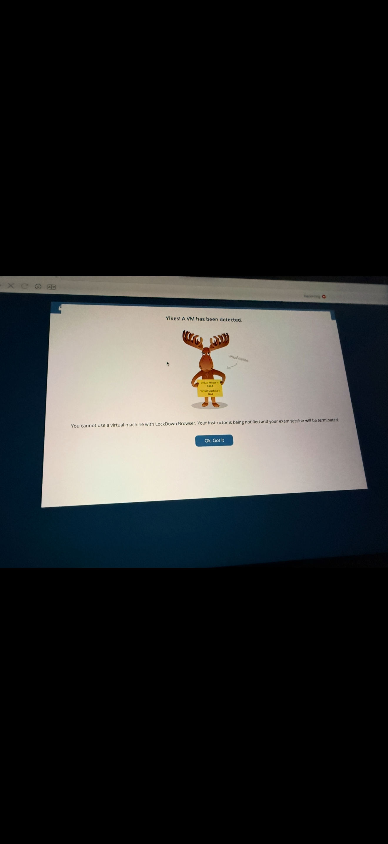 My Macbook Pro M4 Pro cannot run lockdown browser. Everytime I enter an exam it says that I have a virtual machine running, when I don't have anything of that kind running. I erased all contents and settings to start from new but it still gives me the same error.