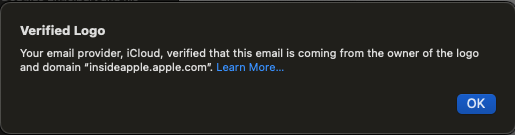There's a tatty Apple logo with irregular edges, but oddly I'm told it's a 'verified logo' - so the looks ok, but does that mean the email is genuine and not a phishing attempt.