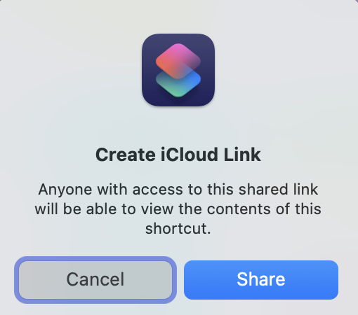 As an aside, I'm curious how to post a Shortcut to this site. I imagine it involves Copy iCloud Link. AI Google says clicking that produces a dialog box - but not in my case.