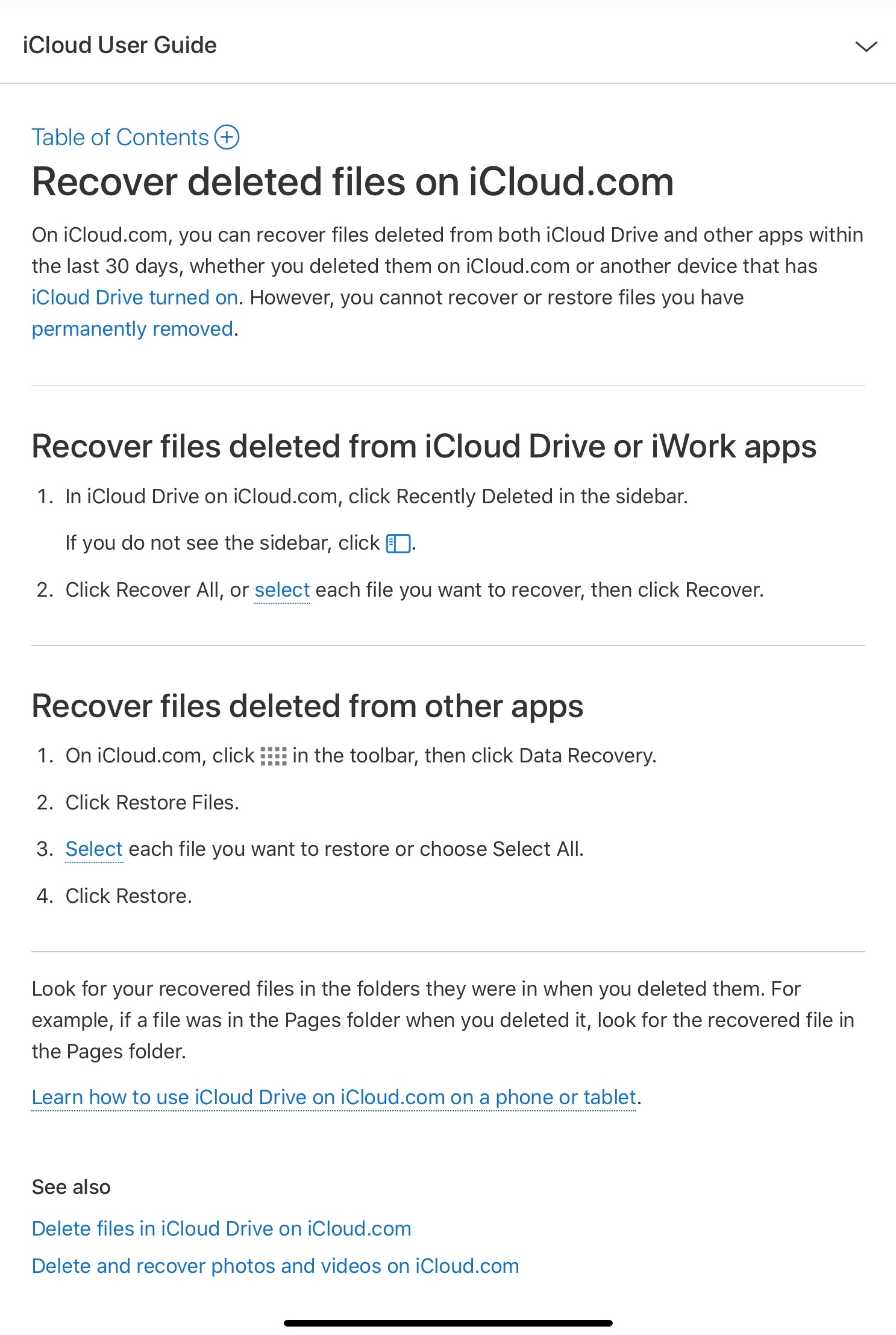 I’m not going to issue a how-to user guide on iCloud, but it serves all my needs including recovering deleted files:
