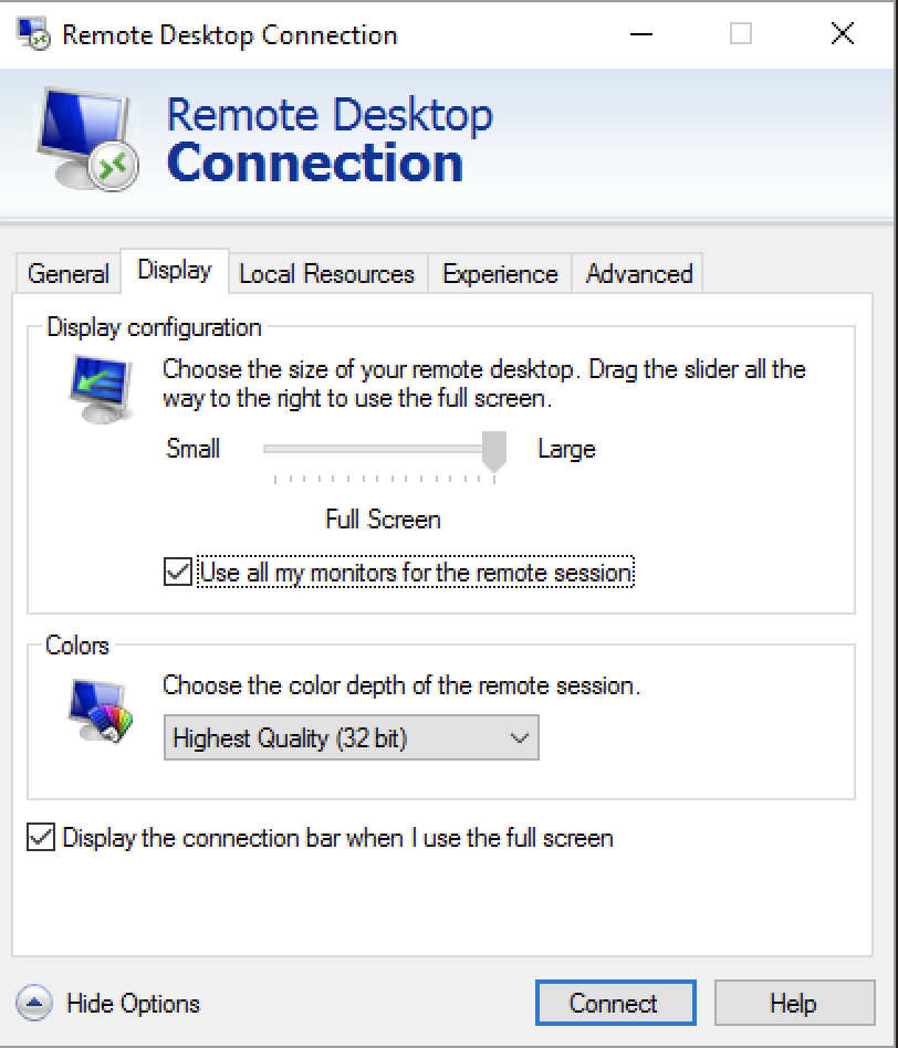 I have the same issue described previously in this thread: I use an iMac at home with dual monitors and remote desktop to my work computer, which is a PC with dual monitors. When I check the "Use all my monitors for the remote session" option in the remote desktop session, the session still only uses one of my home monitors (i.e. the iMac). The only change is that I can now drag a window on the remote session off the screen [and cannot drag it back as it is now on the secondary display at work, but not visible at home]). And yes, my home computer is set with the display extended, not mirrored.