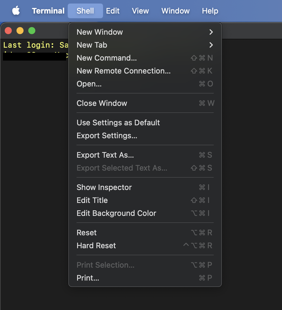 - Issue: The Terminal app occasionally freezes completely when I click the "Shell" button in the top menu bar. I typically use this button to open a new tab within the Terminal window.