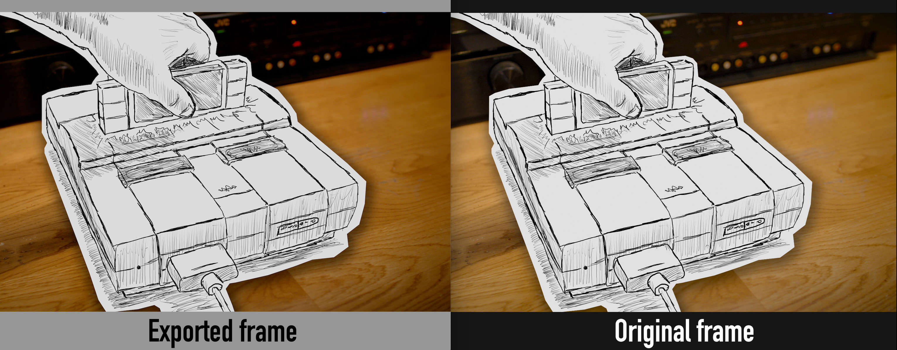 Also as described above, it's possible to take a full-screen capture of the FCP viewer so that it's dimensionally perfect, and without drawing a capture box by hand. That also works around the problem. However, when going to full screen, FCP playback immediately starts from the current frame.