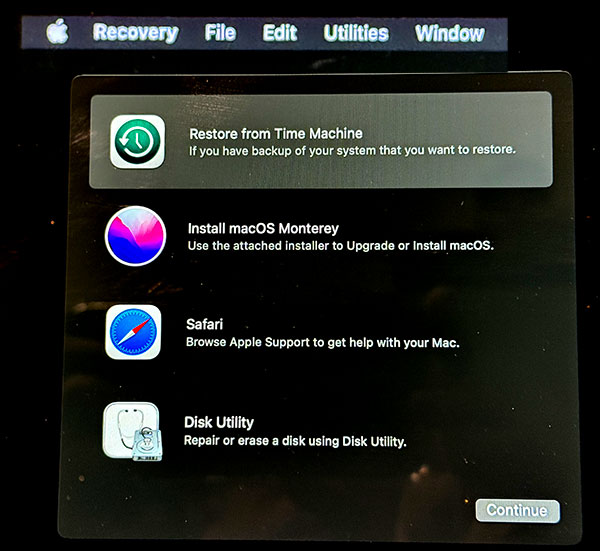 gave me the Recovery Disk Utility and Reinstall macOS Monterey options