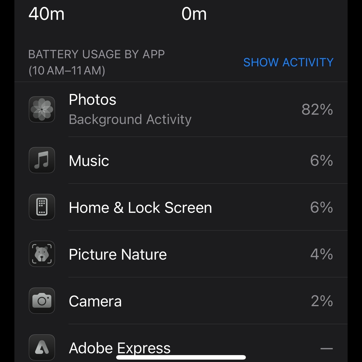 My photos app is using a ton of my battery and it’s running in the background. I have ICloud Photos turned off and background app refresh turned off. How do I fix this? My battery is draining fast and I have a brand new iPhone16 pro. I don’t use the photos app much but it’s being used in the background. Please help me!