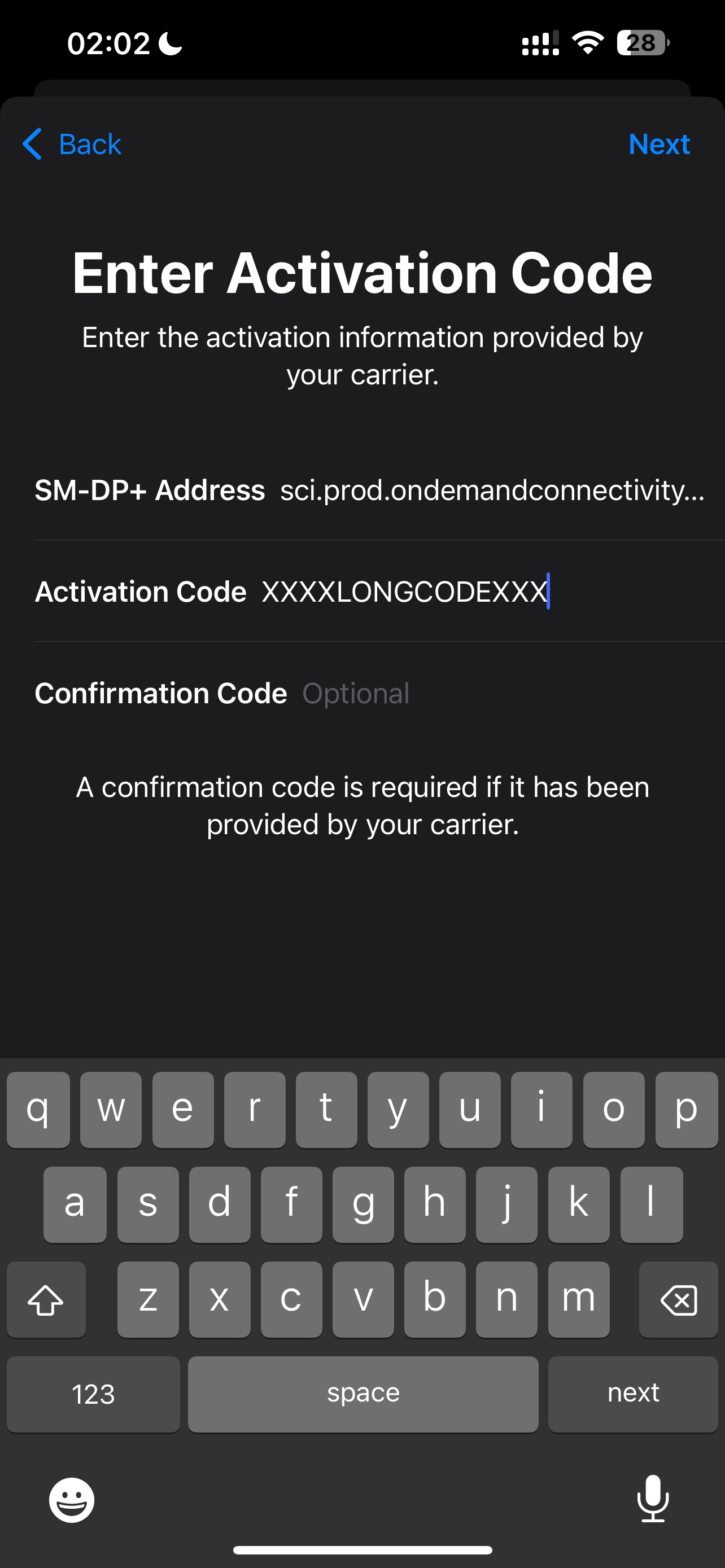 LPA:1$sci.prod.ondemandconnectivity.com$XXXXLONGCODEXXX$