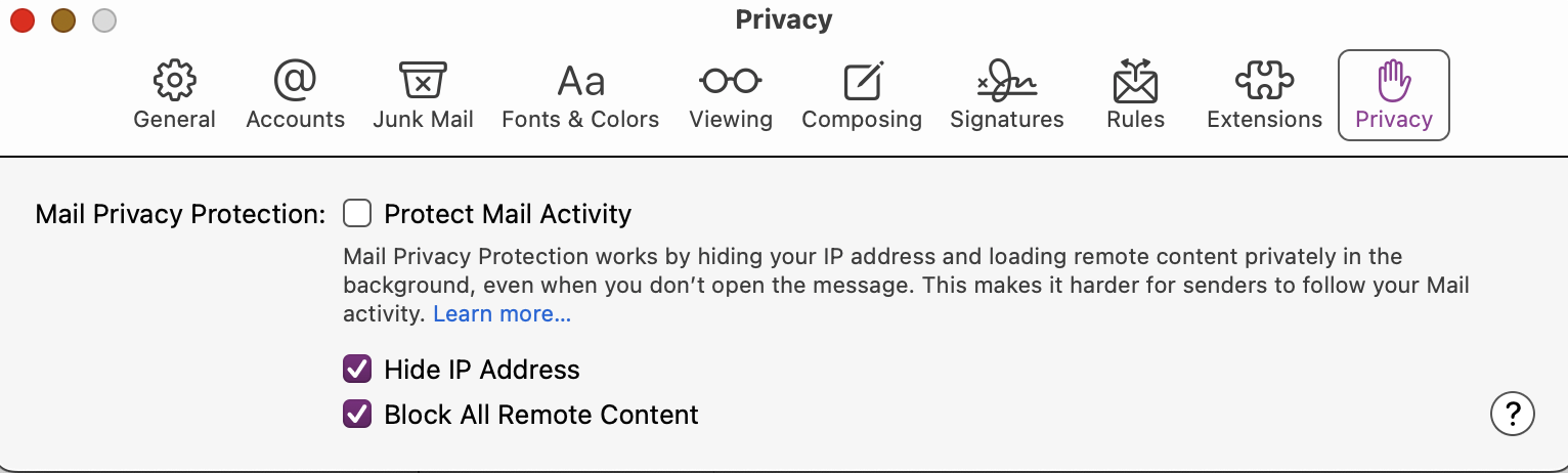 Mac Mail message: "Your network preferences prevent content from loading privately."