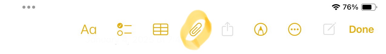 You can 1) Copy a file or image and paste it into notes 2) Expand the editing portion of the app so more of the toolbar shows up.