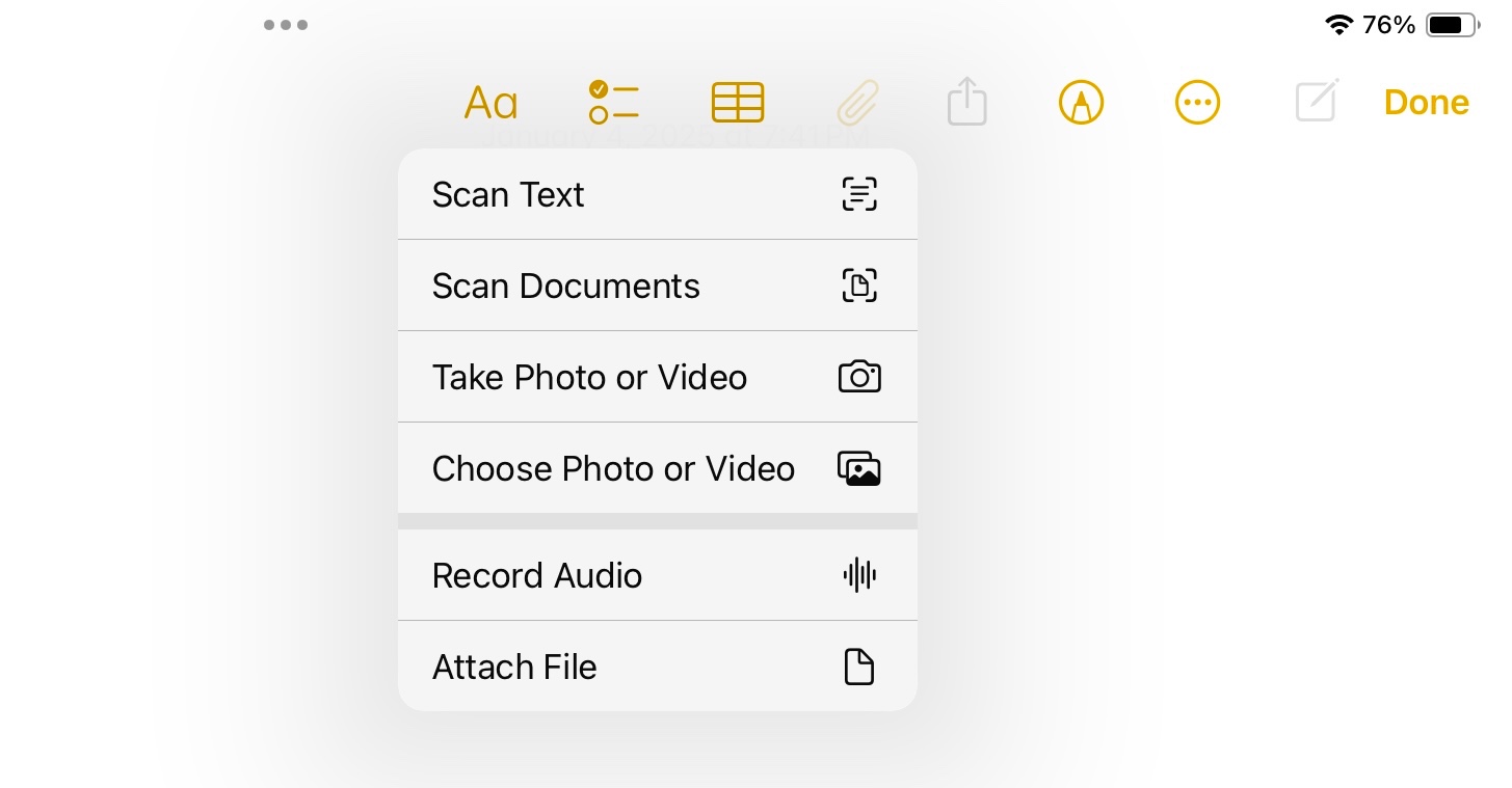 Missing camera feature and import command in Apple Notes on iPad and iPhone