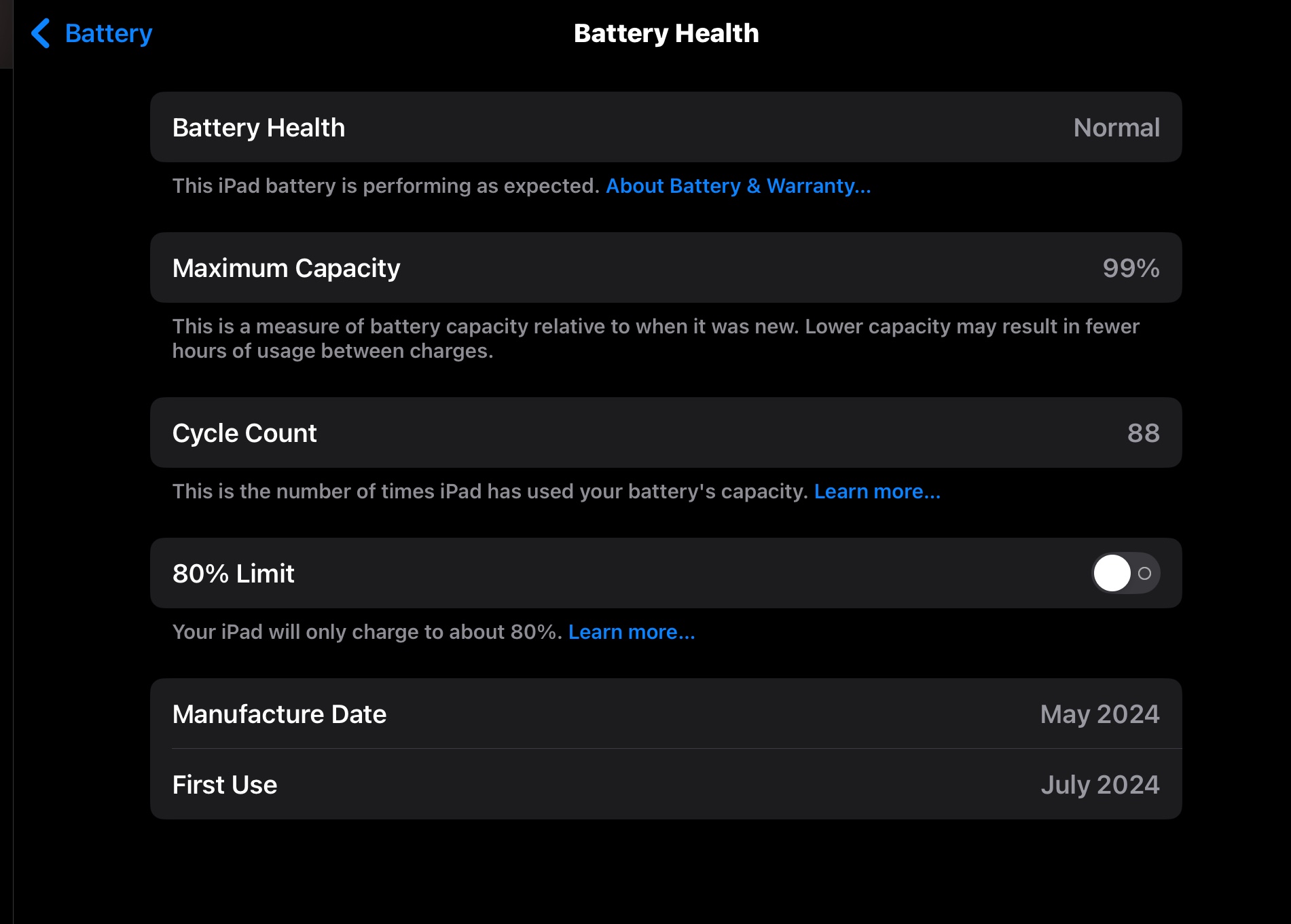 If you are experiencing difficulties with your iPad battery holding charge, you might be best advised to have your iPad tested. If you directly contact Apple Support - and explain your problem - you can request a remote battery diagnostic. The tests will confirm the status of your battery - and other elements of your iPad’s health.