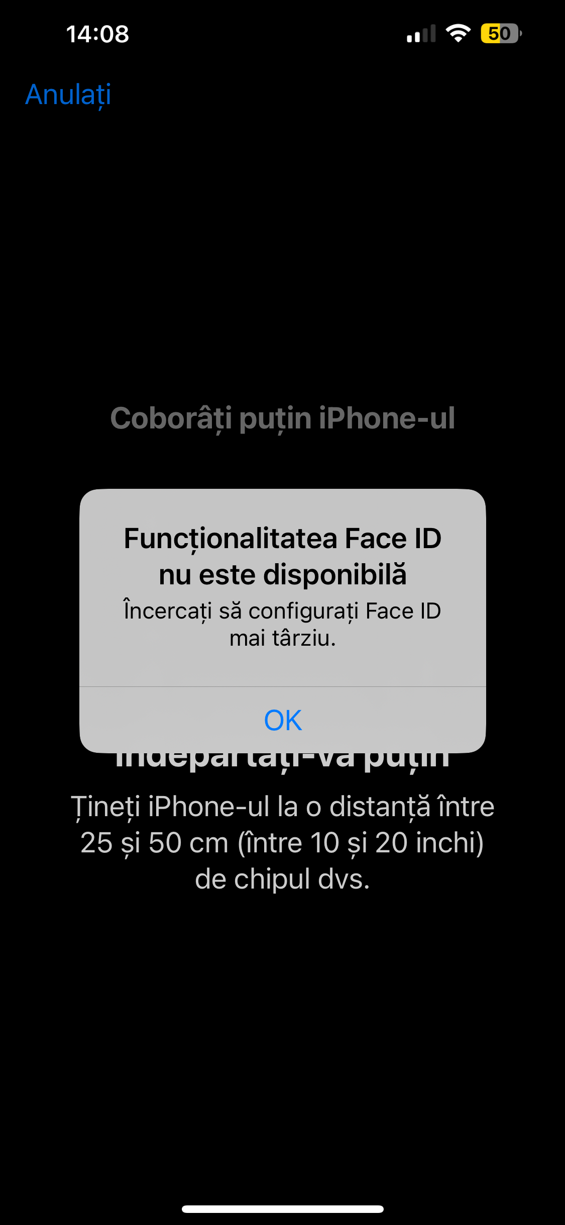 Buna ziua.Am reconfigurat face id dar camera este blurata cand ma uit in telefon si tot nu ajung la final ** configurarea.Ce sa fac?