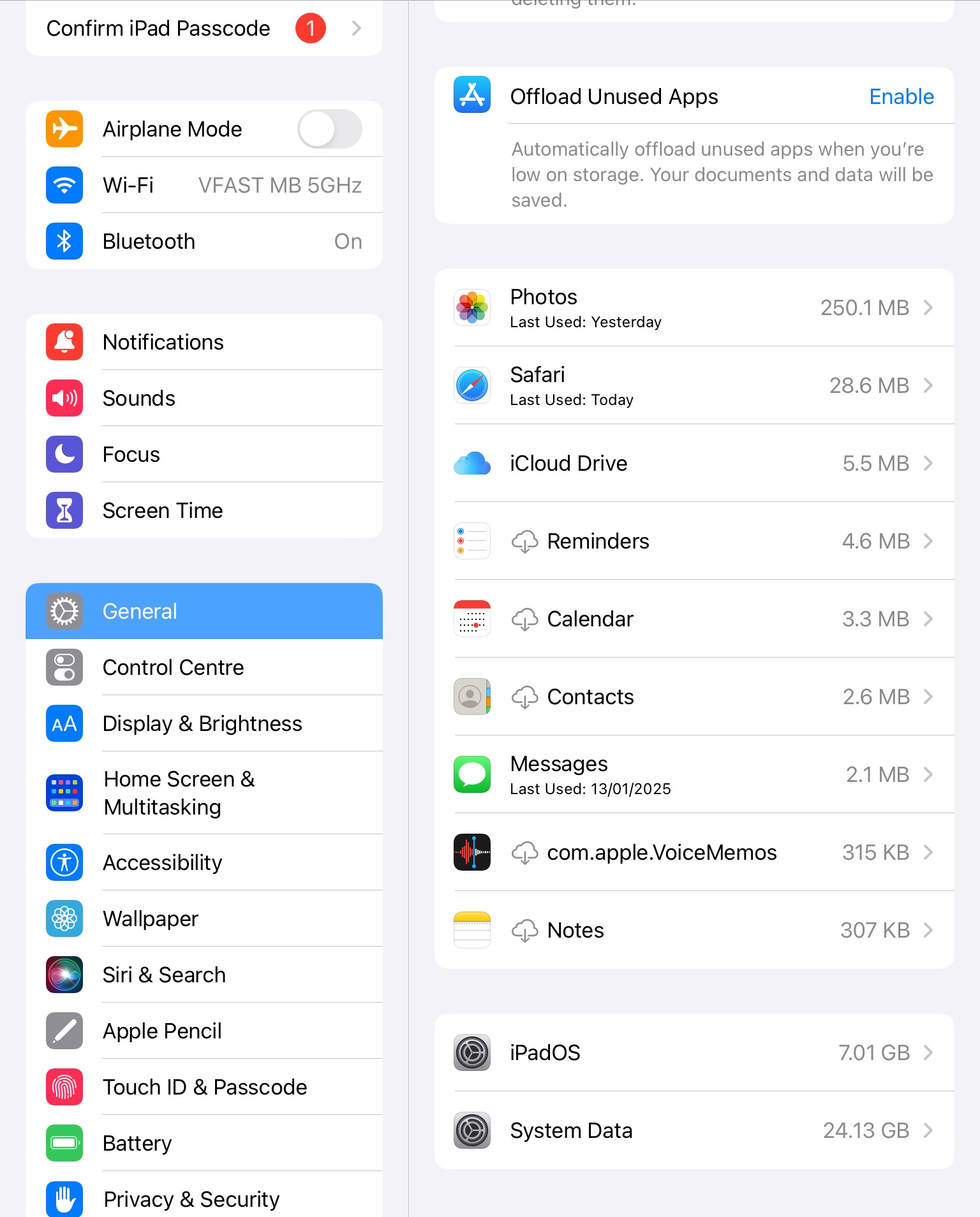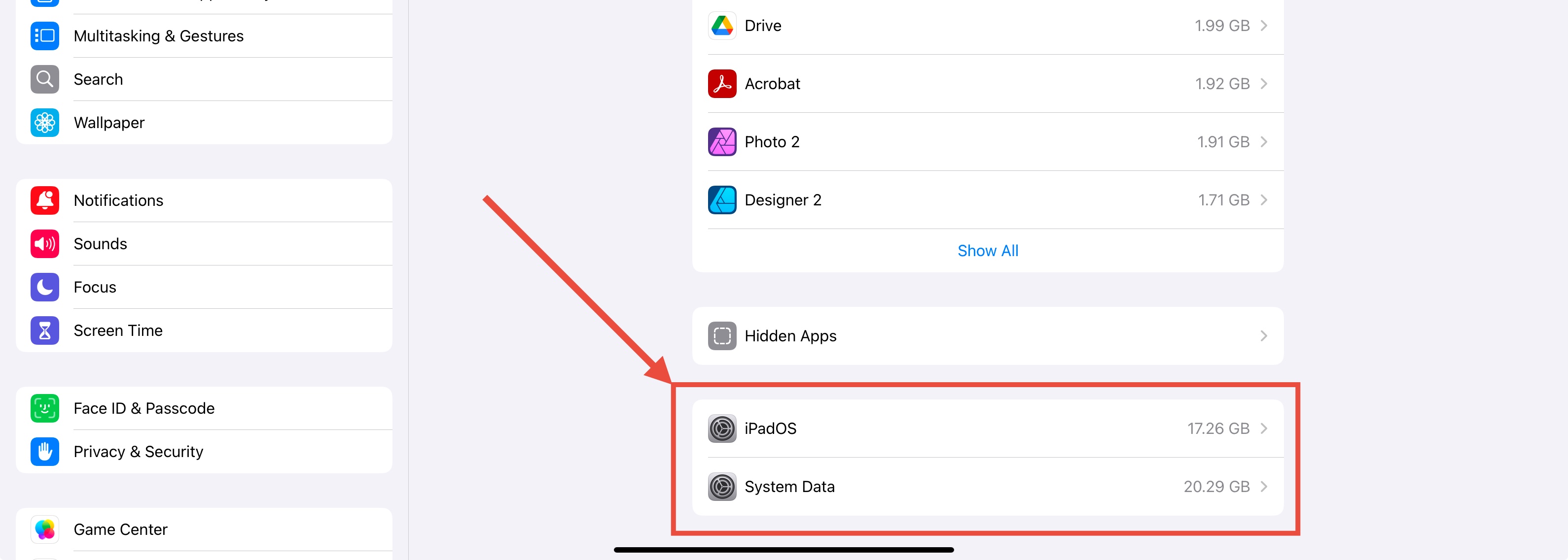 You will note the my "iPadOS" data is considerably greater than yours - the reason for the difference being Apple Intelligence that is enabled on my iPad; for your iPad, I suspect that your iPad does not support Apple Intelligence.