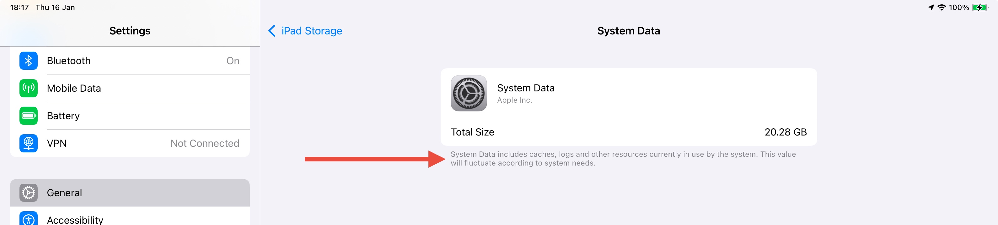 A simple restart of your iPad will usually clear the majority of your cached System Data. You should note that as your iPad subsequently caches data as it is being used, the amount of storage will again increase.