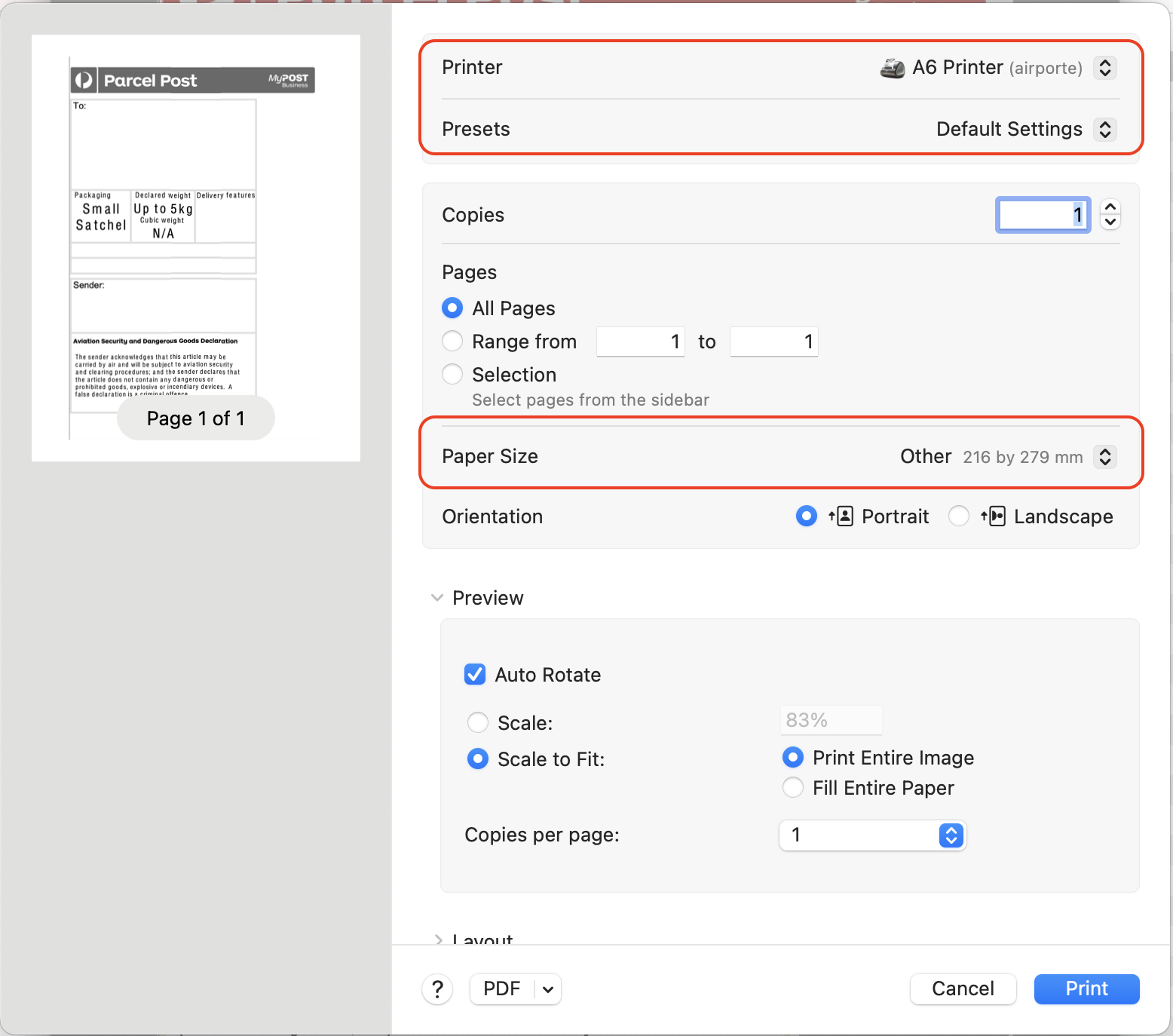 I used A6 printer for my shipping labels and A4 printer for tax invoices.