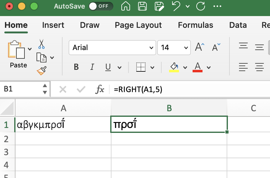 Indeed, if I use only single, unicode-ready characters, for instance the 5 last characters using RIGHT(*, 5) of eg. αβγῑκλμῖπρσ are, correctly, μῖπρσ. Five in total.