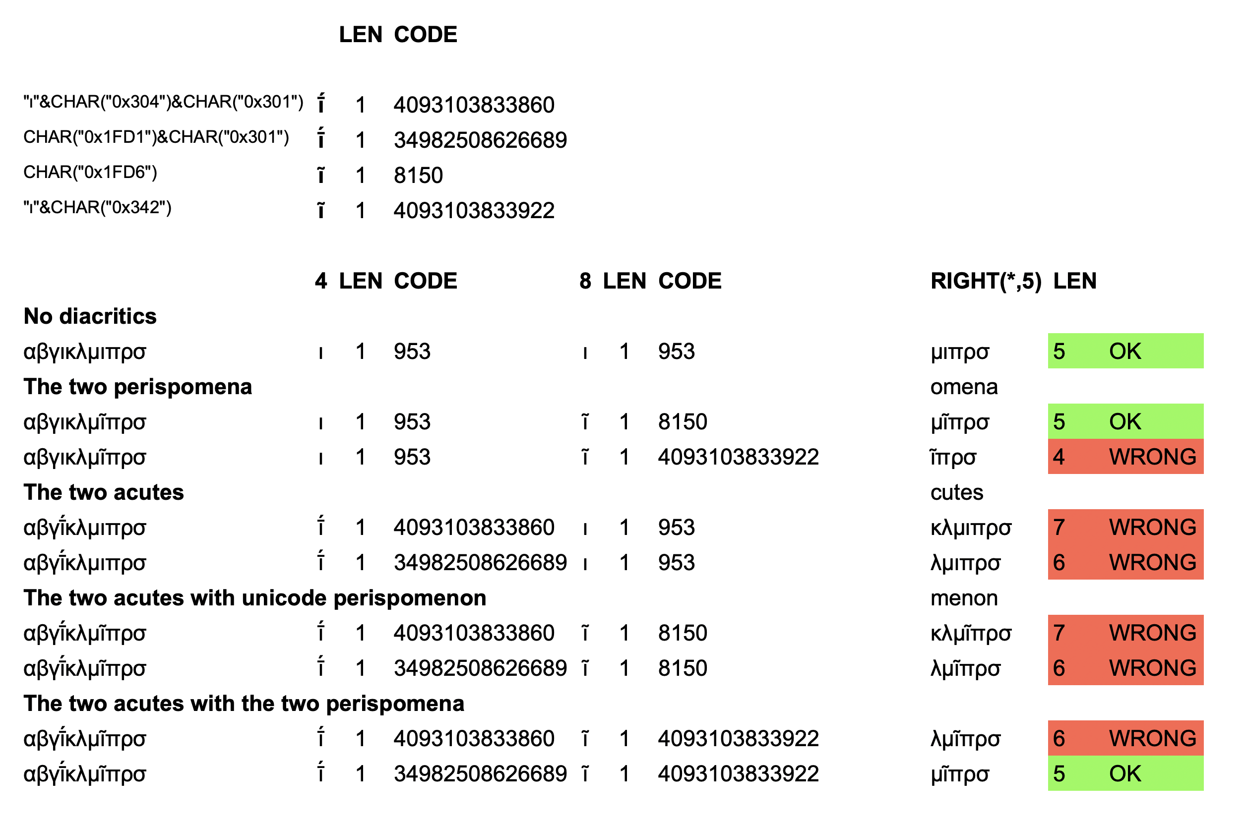 Problems: if I create any diacritics using Unicode combining characters and CHAR(), the last FIVE (5) characters are wrong