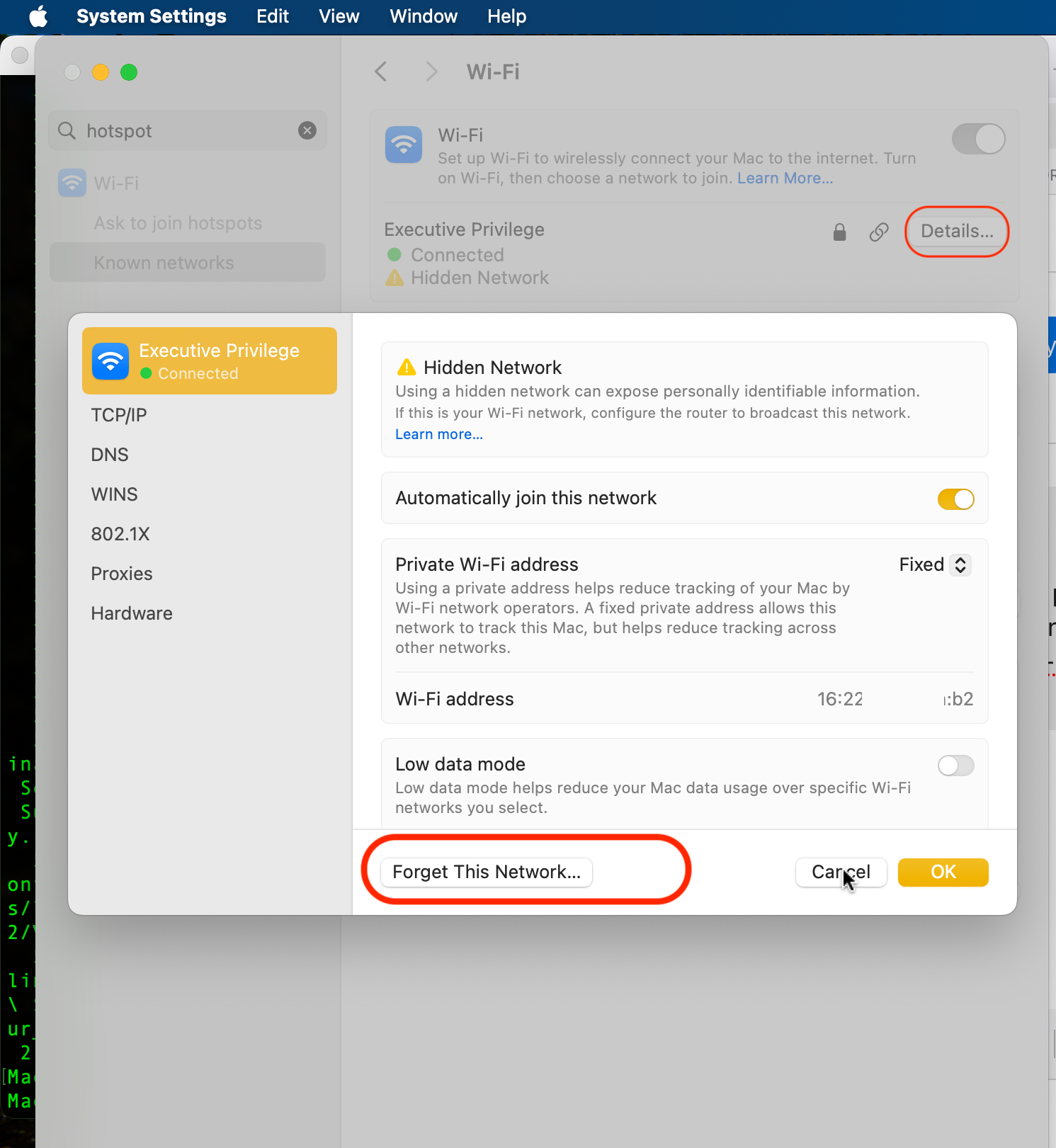 My new iPhone 16 changed my personal hotspot password. now my MacBook gives me an error when trying to connect "Failed to enable Personal Hotspot on..." I can't find where to forget the Personal Hotspot or change the password in the WI-Fi Settings. How can I connect to my Personal Hotspot?