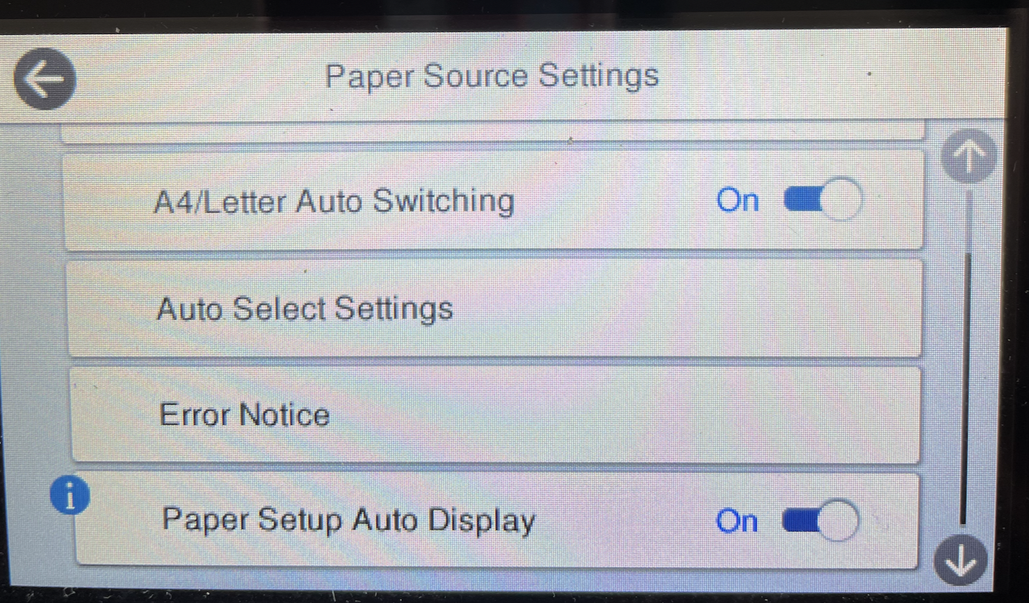 Thank you very much for your reply! Paper Setup Auto Display is turned on: