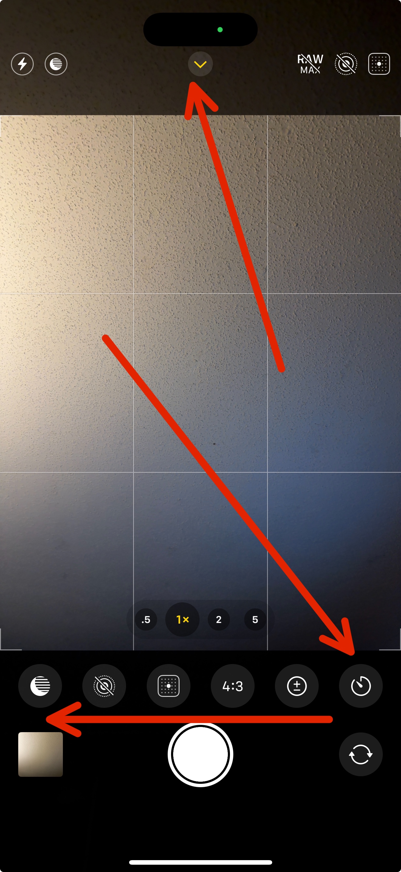iPhone 16 pro iOS 18 camera no timer icon at top of screen cannot delay 3 and 10 seconds