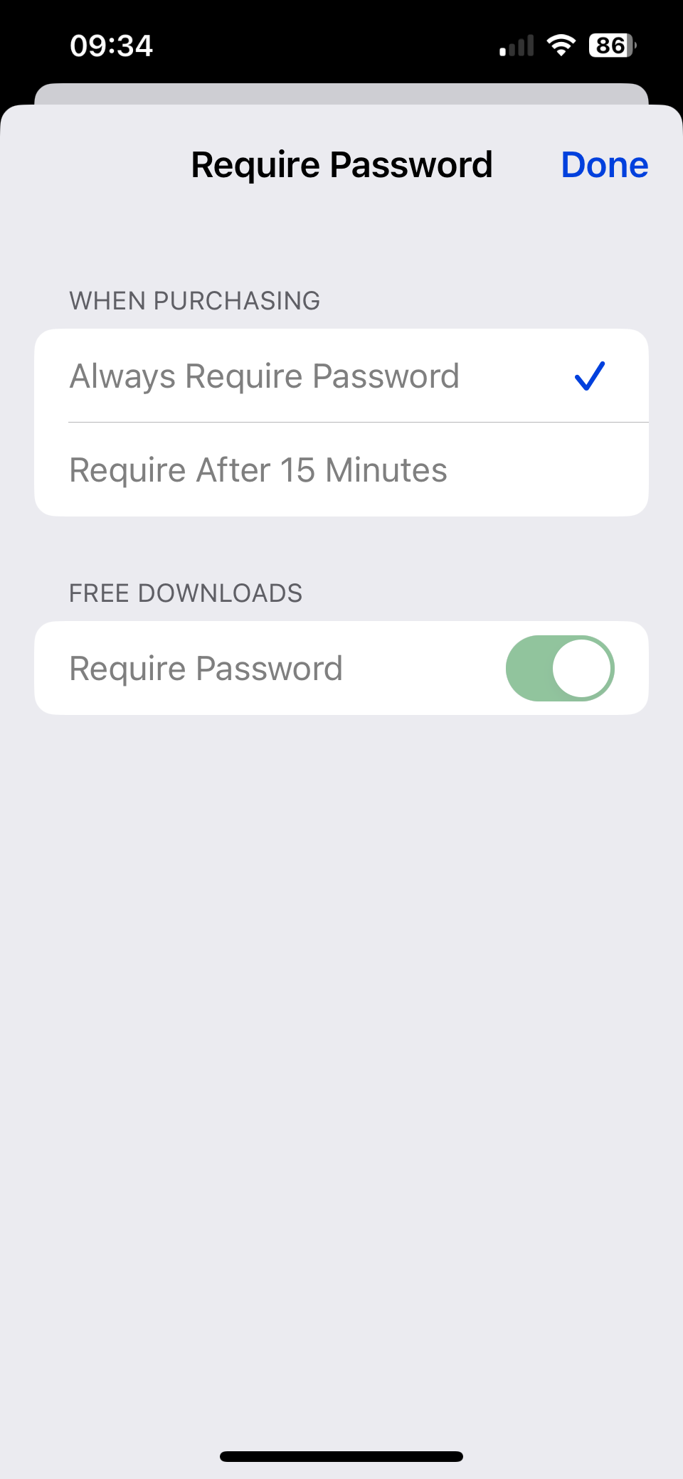 This is my problem. I cannot turn off the require password for Free Downloads. I was always able to make purchases but I cannot update with typing password for each one every time! I have updated payment method and verified country but it didn't help. Any thoughts? Thank you!