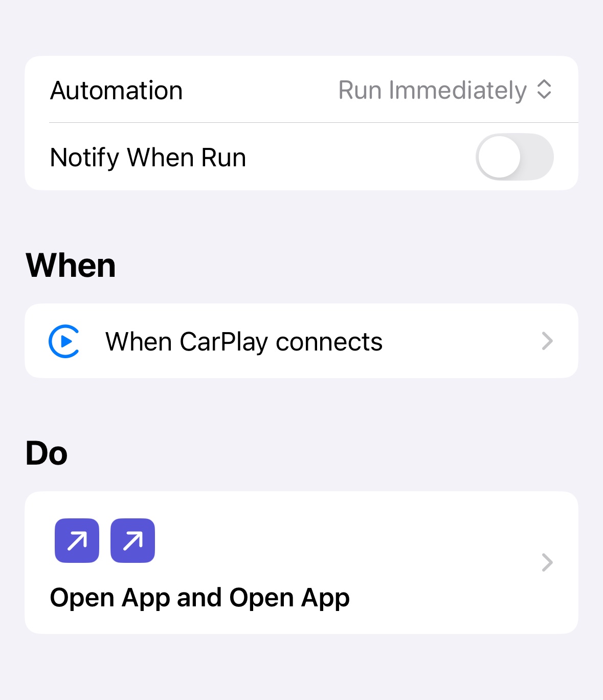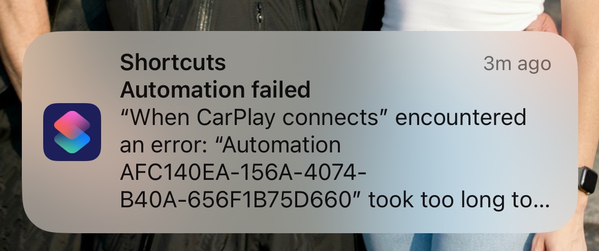 Shortcuts automation error - CarPlay