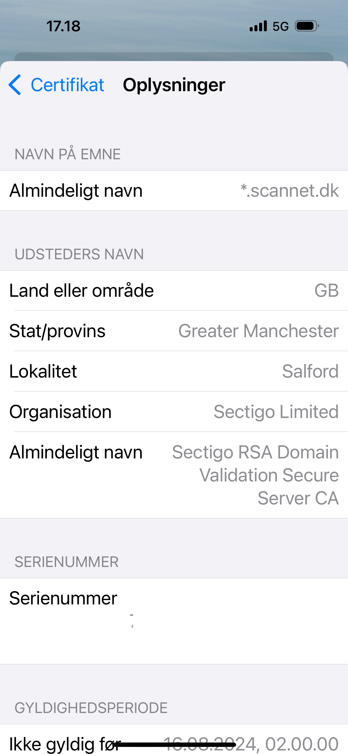 my wifes iPhone shows a stramge message with different intervals. On the pause screen it says in danish: Can not control the server identity. The identity on avalonia.dk camnot be confirmed. Check certificate to continue. I have tried to check and cancel but it pups up again and again. Have tried to torn off the phone and also to change between wifi and mobile network.