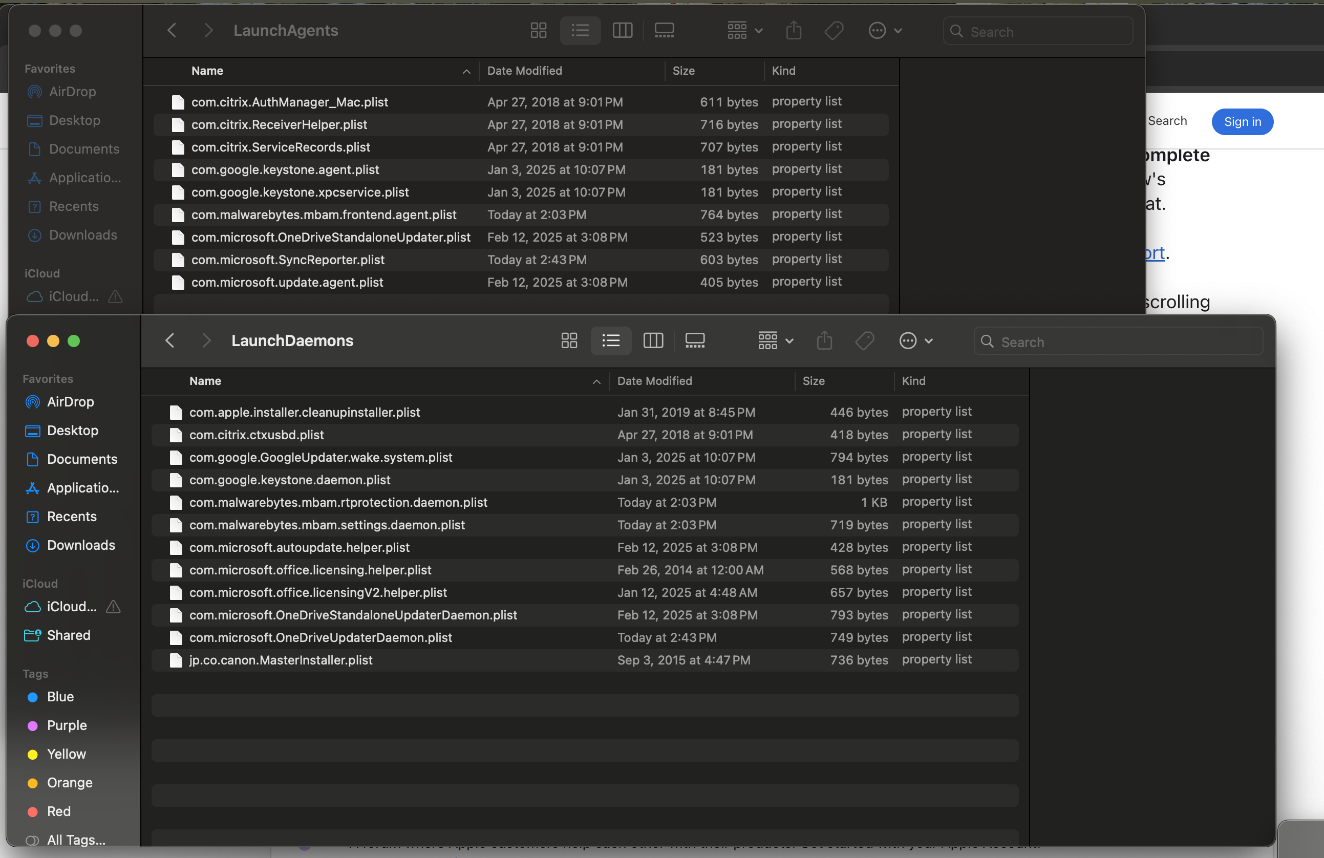 Shortly after transferring data from my old macbook air to my new computer, I received a warning message indicating that a malware attempt was blocked. The popup will not go away despite clicking done numerous times. Screenshots of the drives I believe are impacted below. Note the popup indicates that "ReceiverHelper" and "ServiceRecords" are not opened. I thought a malware scan would clear but no luck so far.
