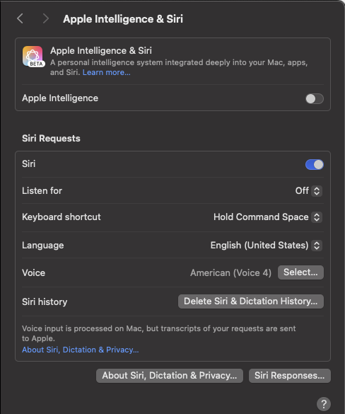 Hi! I'm trying to turn off Apple Intelligence in the latest update. In settings under Apple Intelligence, it seems there's no option to turn off this feature. Any suggestions would are welcome!
