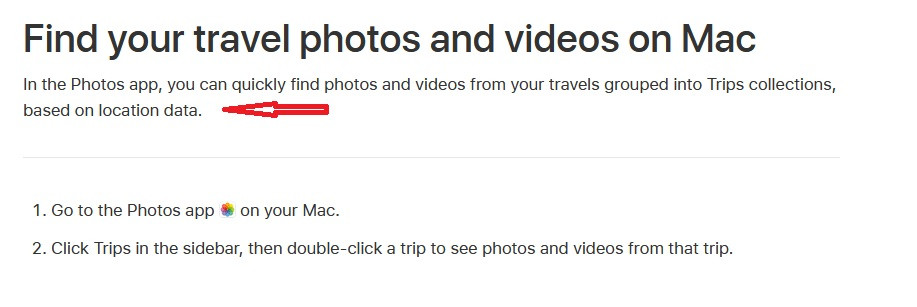 Photos assembles some photos into a trip based on the location. It failed to add a few photos into a specific trip, presumably because they were taken too close to home to be considered as part of the trip.