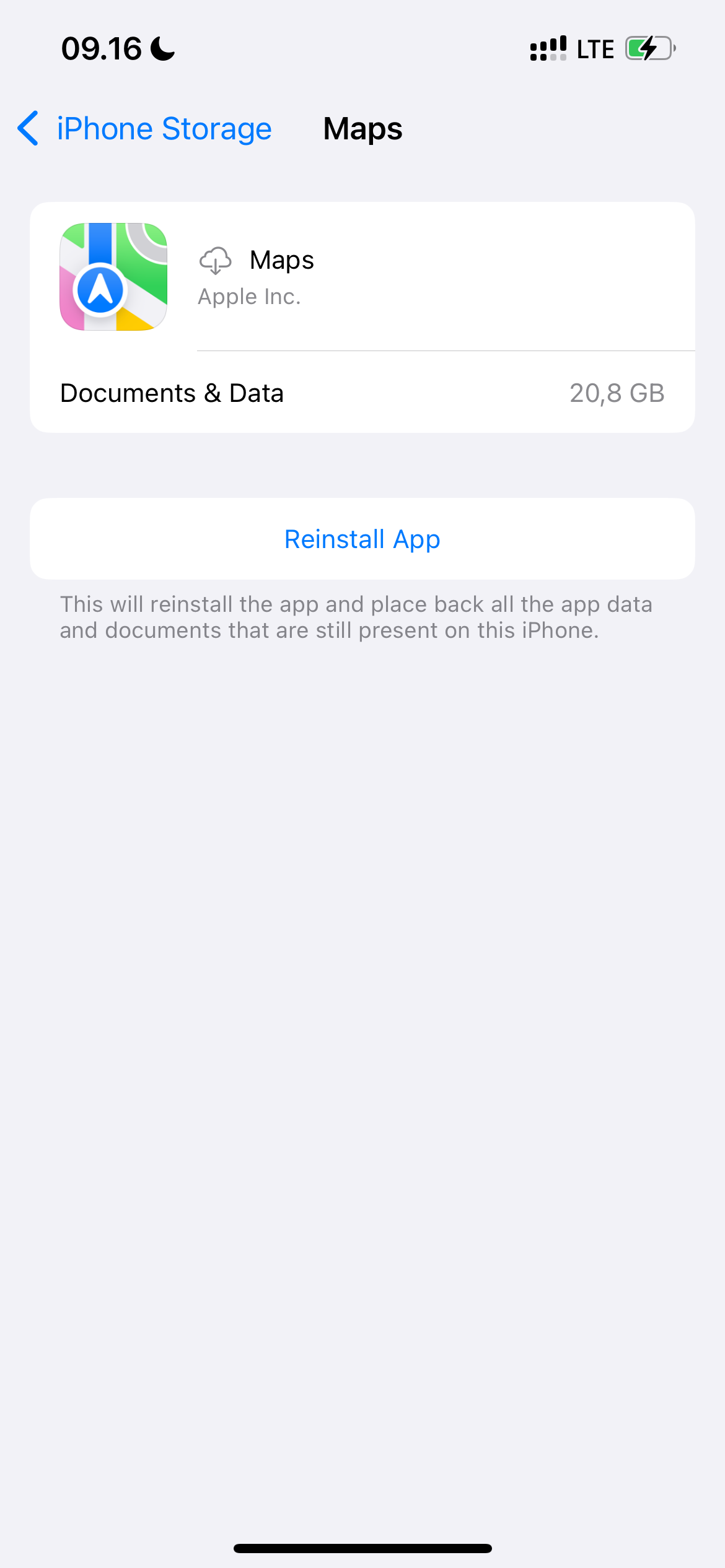 Documents and data in Maps Data Apple, cant delete and use storage 20,8 GB, how can i fix it