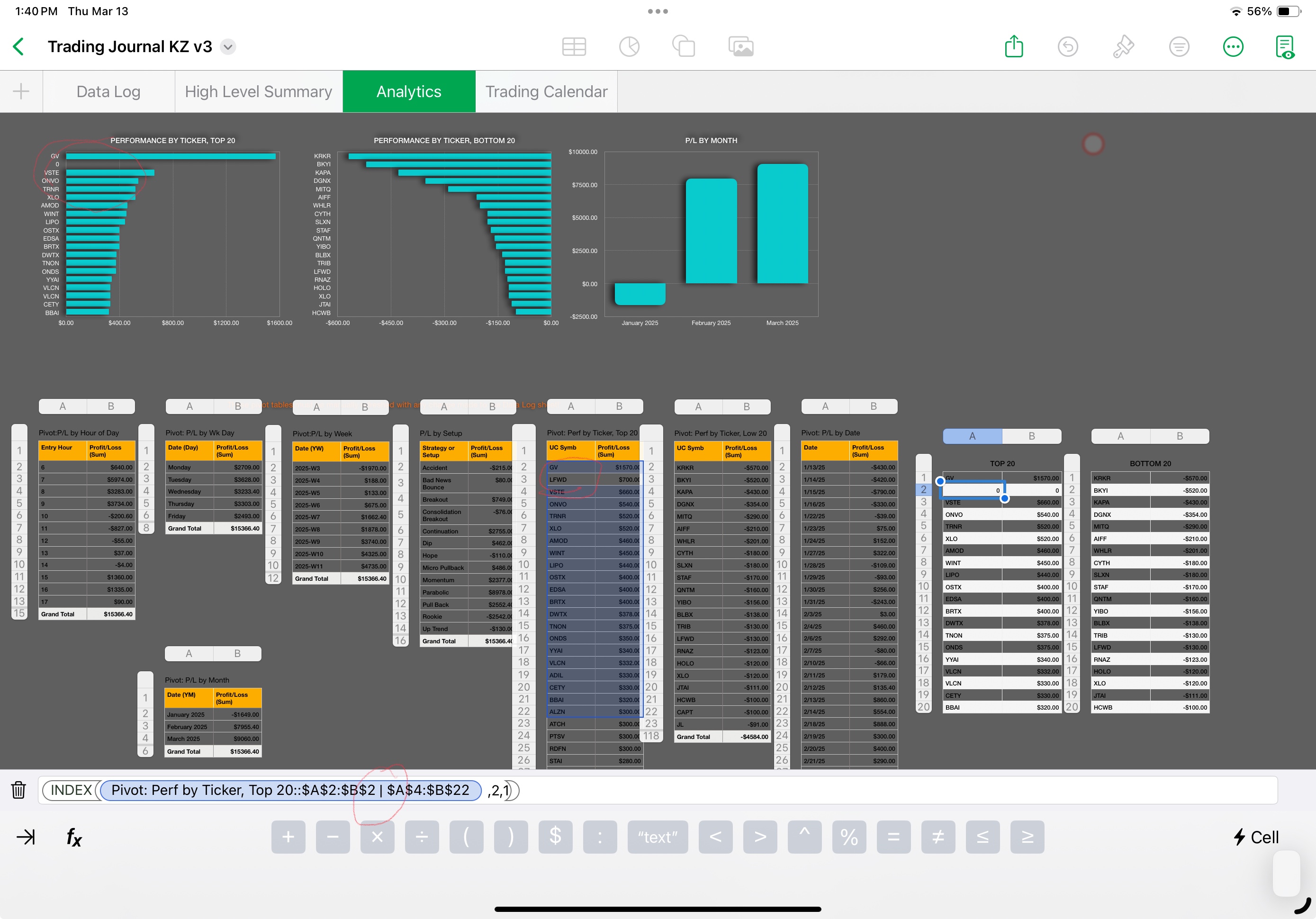 I’ve created a day trading spreadsheet and I am trying to track, among other metrics, the top 20 gainers and losers. The source table has hundreds of rows of data, with tickers appearing more than once throughout, and the two (top 20 & bottom 20) pivot tables almost work but always display MORE than 20 stock tickers. Top is usually 26 and bottom 21 or 22.