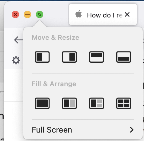 Full screen as in the app window...Use the green pill button, hover a bit to see the menu, Option click it to see more options.