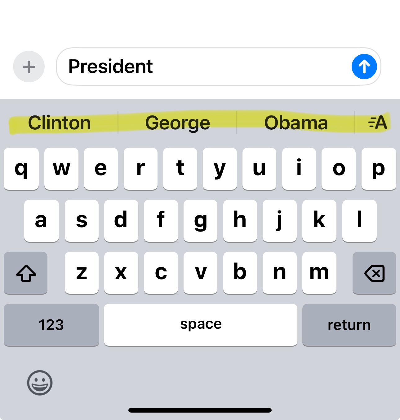Why does my Apple phone only display irrelevant president names when I type the word “president”