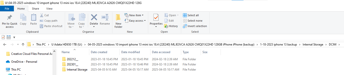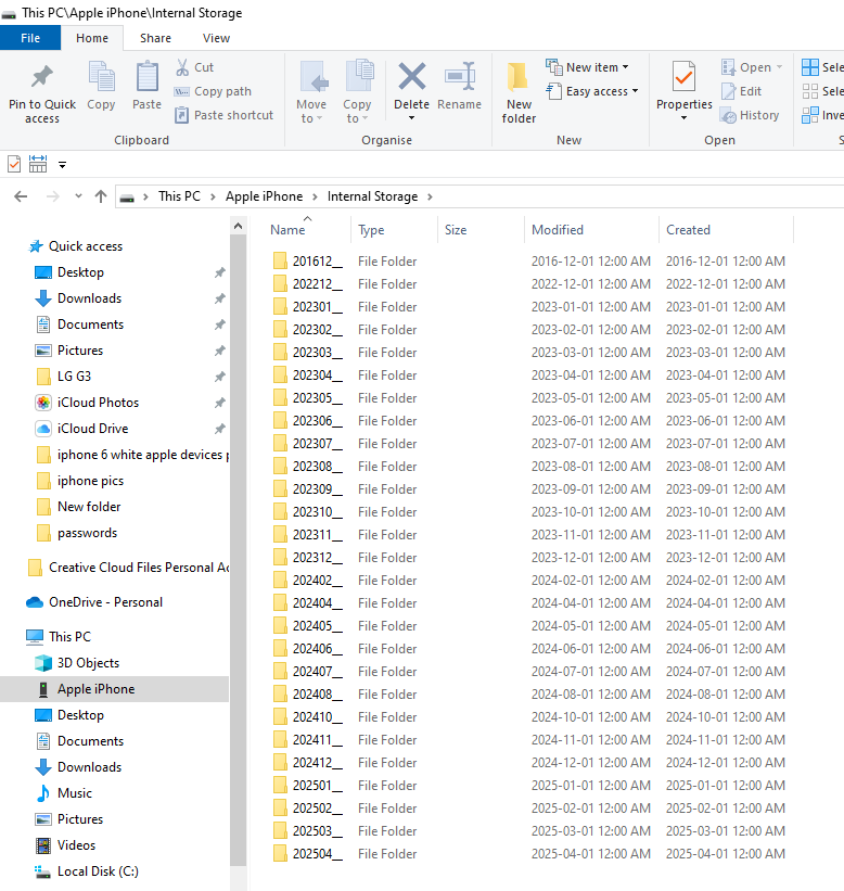DCIM folder removed from path of new ios 18 updates -Win 10 explorer