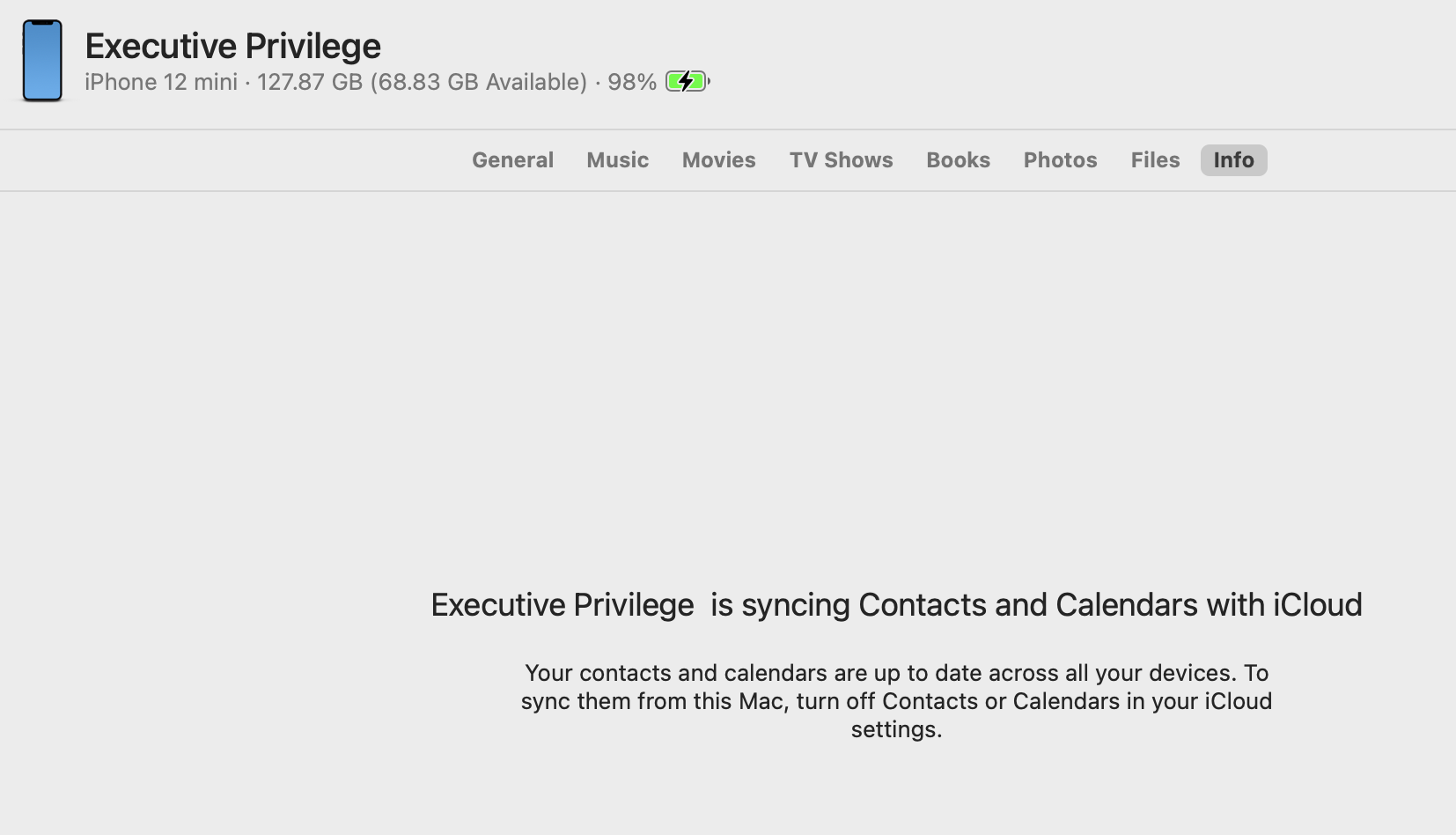 A USB sync of my iphone (ios 18.3.2) to a mac (Sequoia 15.3.2) does not advance past "syncing contacts".