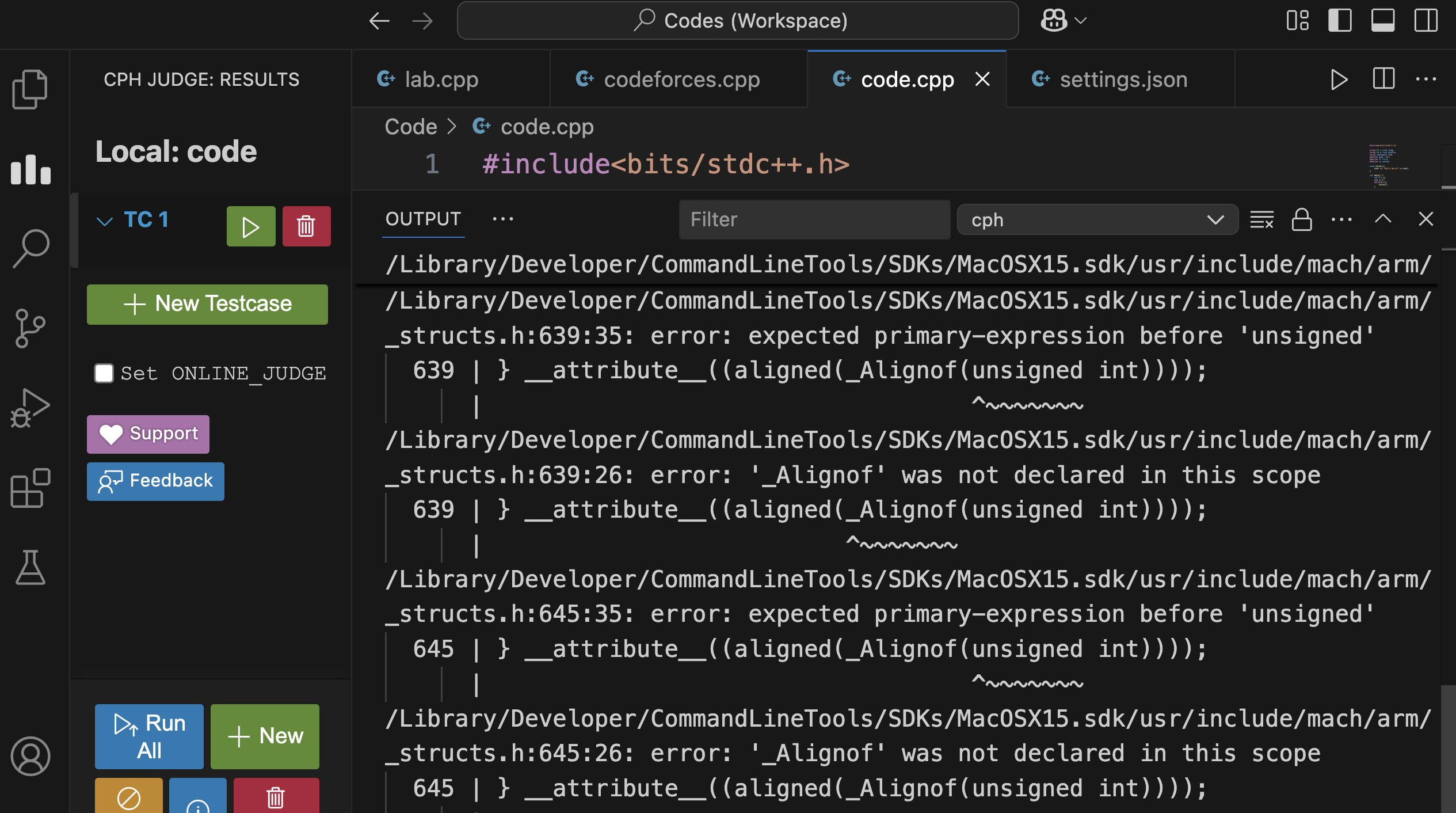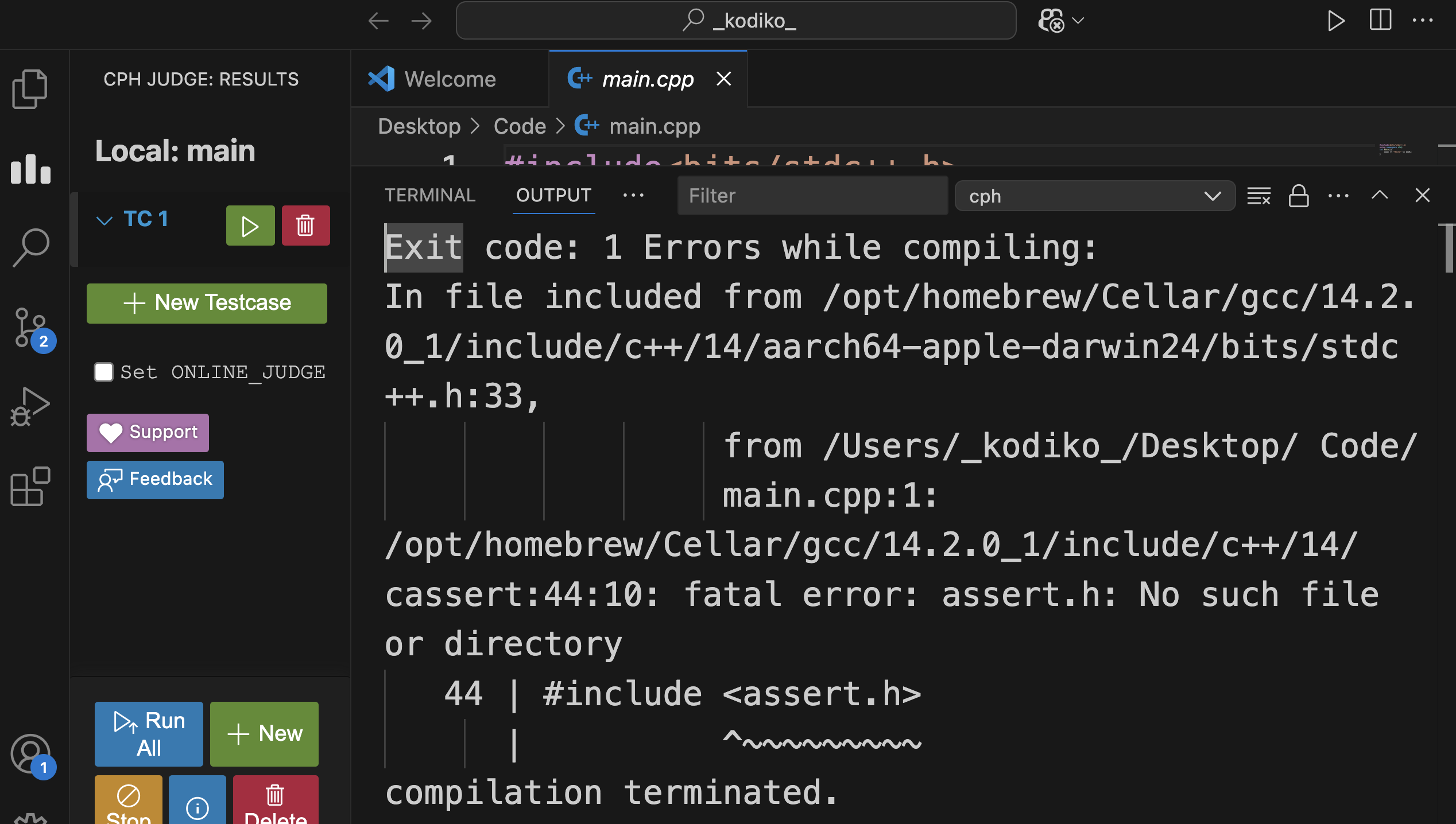 Note that I had run a Python code earlier. I don't know if this issue is being caused by the Python environment settings or not. However, after running the Python code, I also ran the C++ code, and it worked fine. But the next day, it suddenly stopped working. How can I fix this issue?