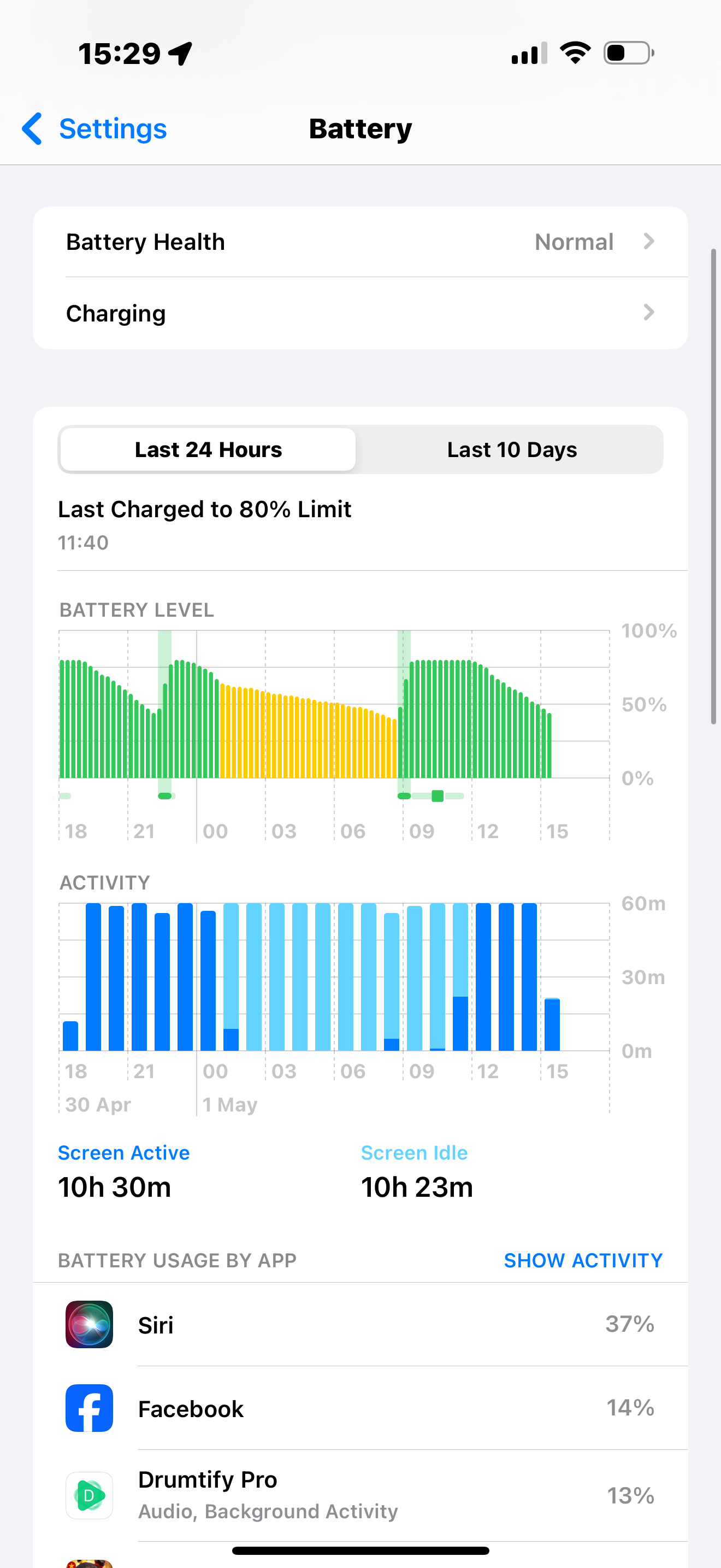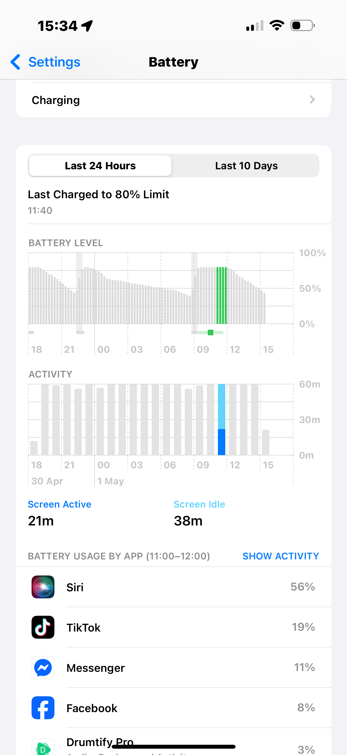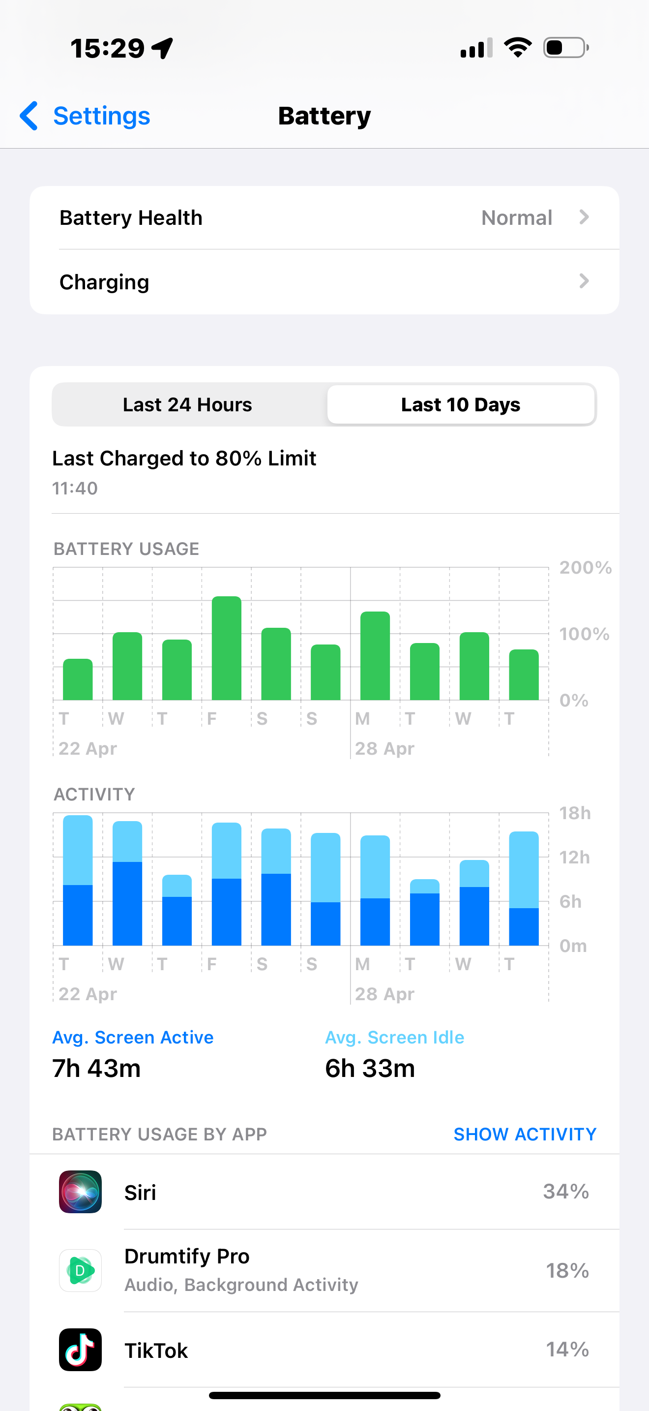 A few days ago I realized that my Siri used too much battery like the below image: