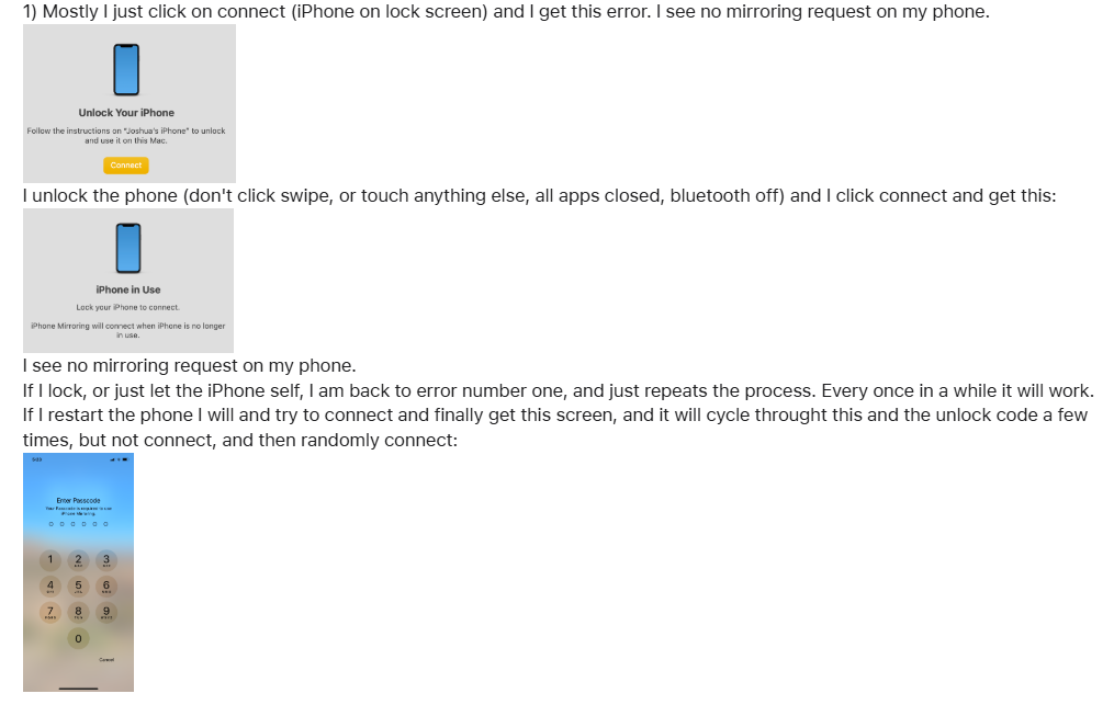 iPhone mirroring not working With M4 pro MacBook pro ( Sequoia 15.4.1) and iPhone 12 Pro (iOS 18.4.1)